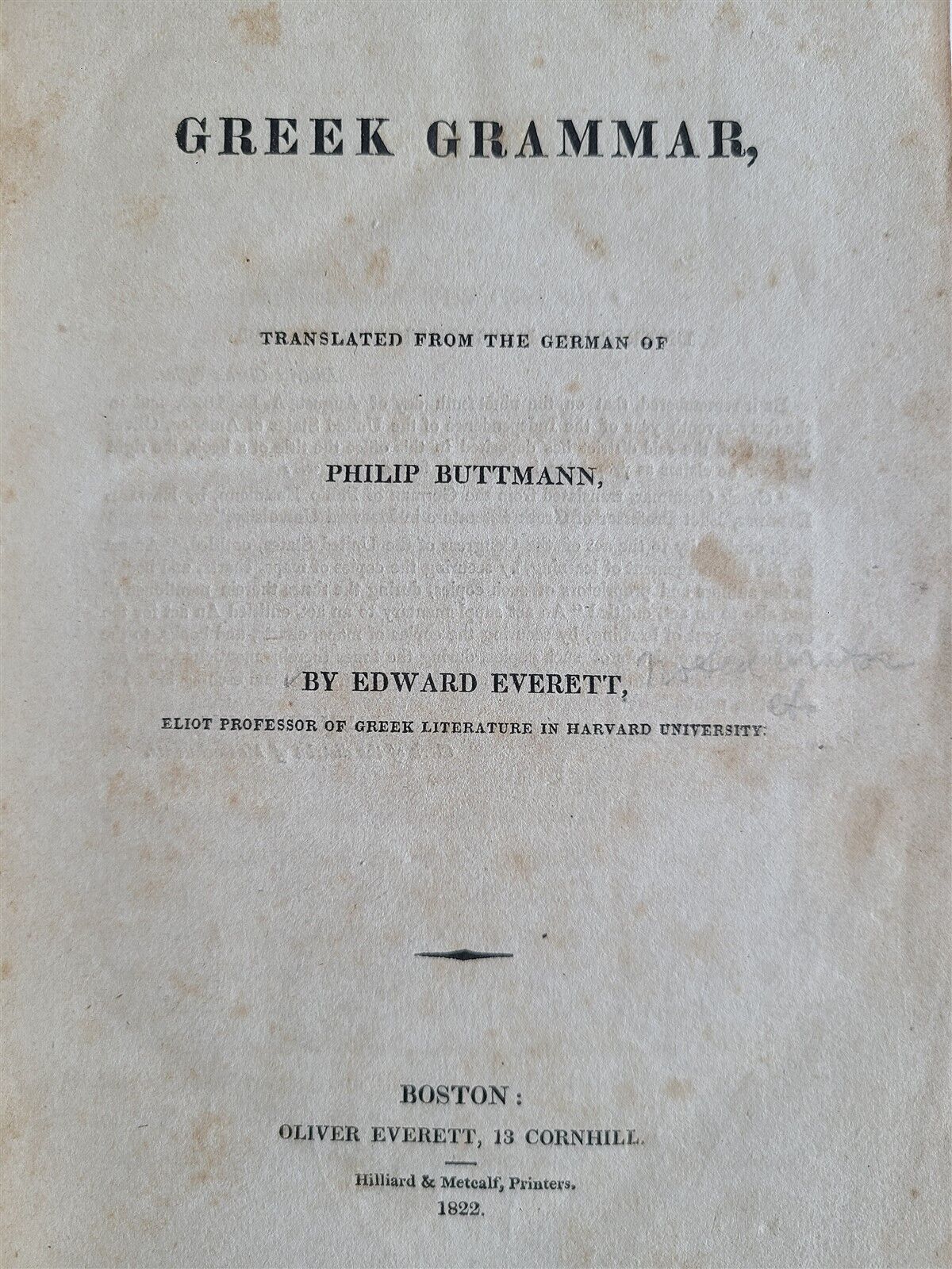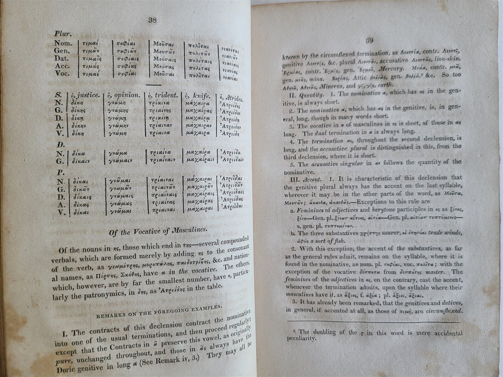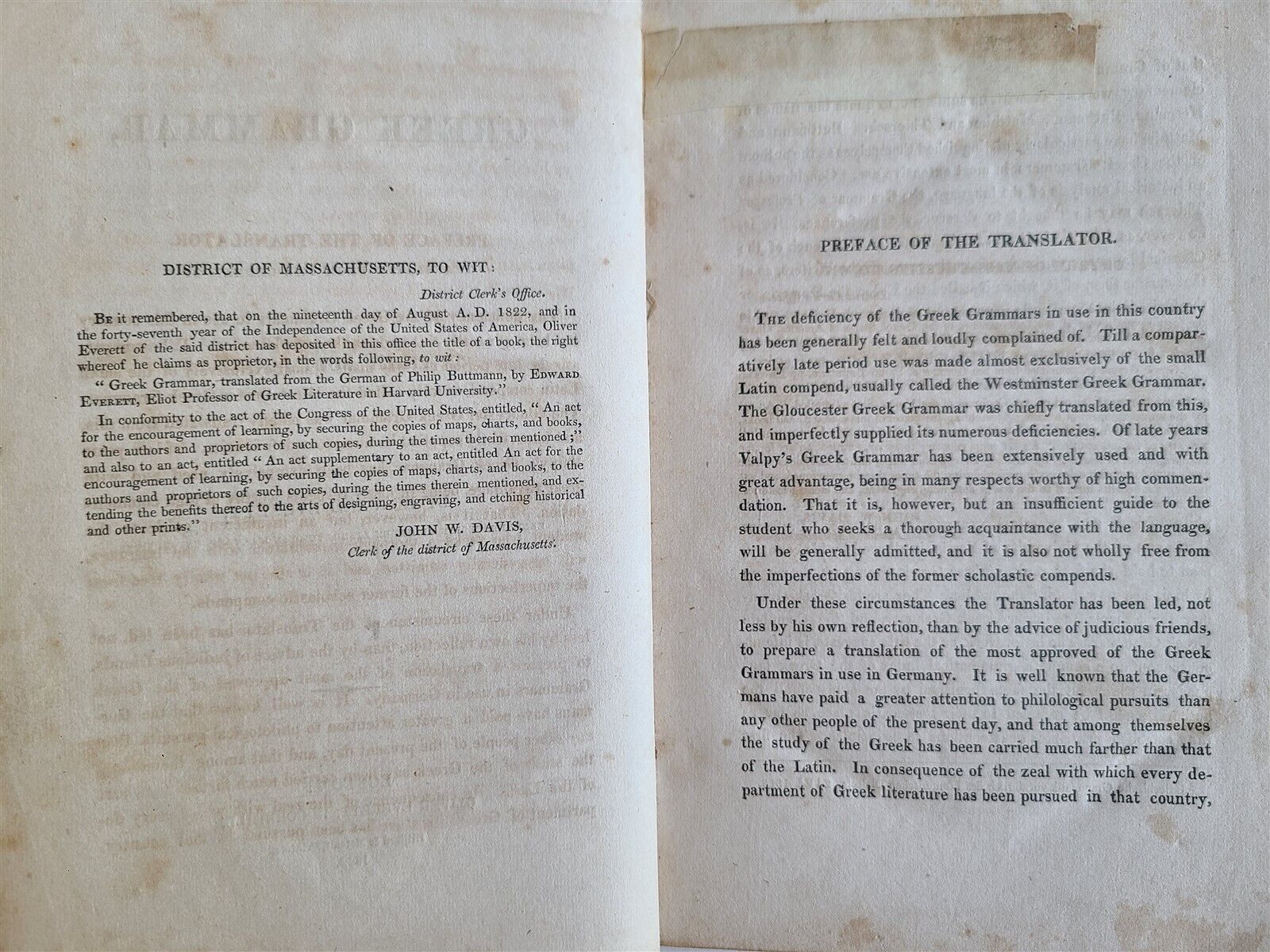 1822 GREEK GRAMMAR by PHILIP BUTTMAN antique BOSTON AMERICANA