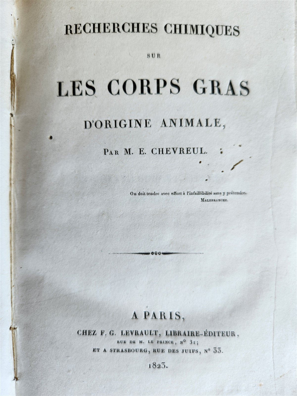 1823 CHEMISTRY Recherches chimiques sur les corps gras d'origine animale SIGNED!