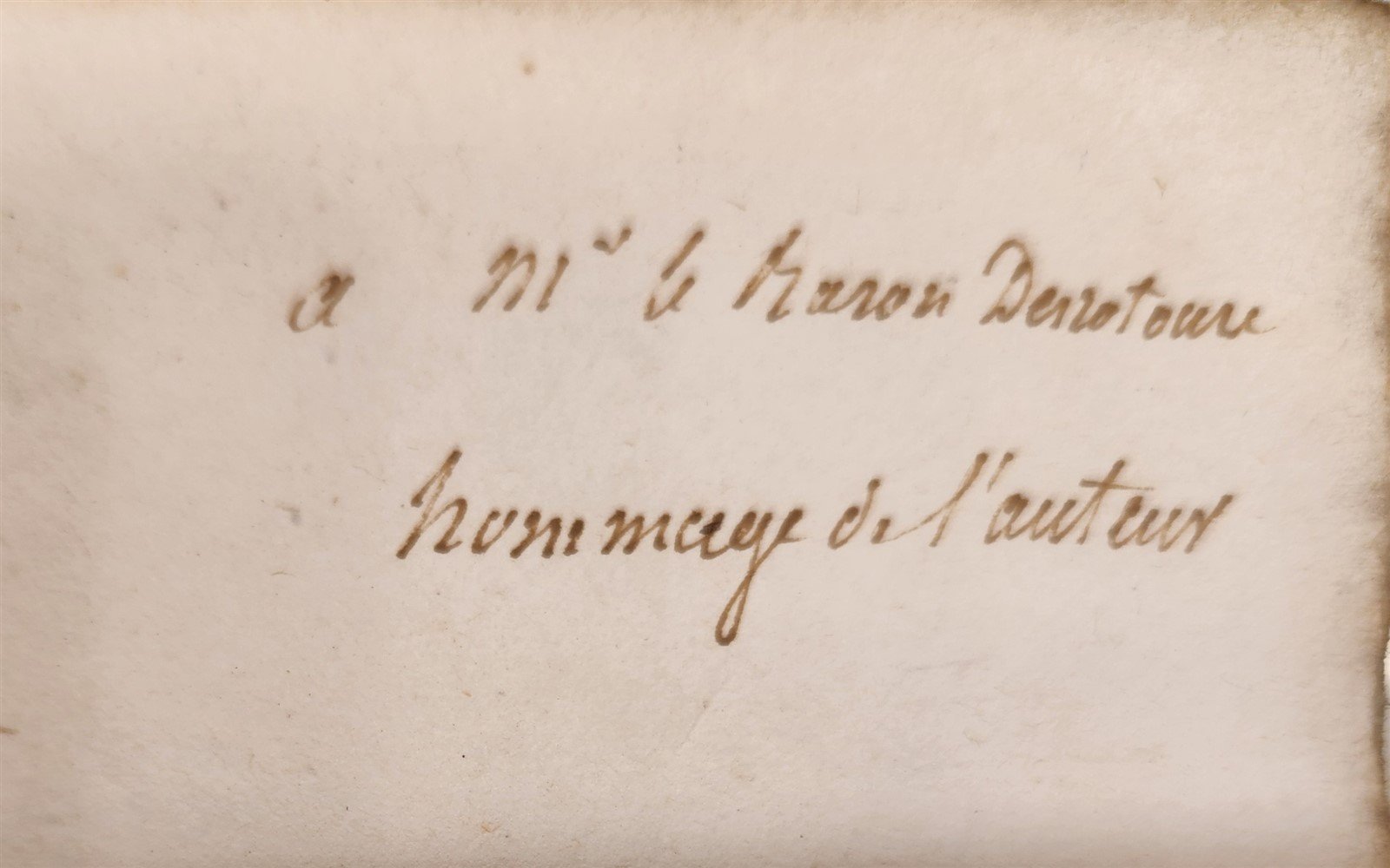 With a personal handwritten dedication from the author to Baron Francois Mathieu Angot des Rotours (1768-1858).