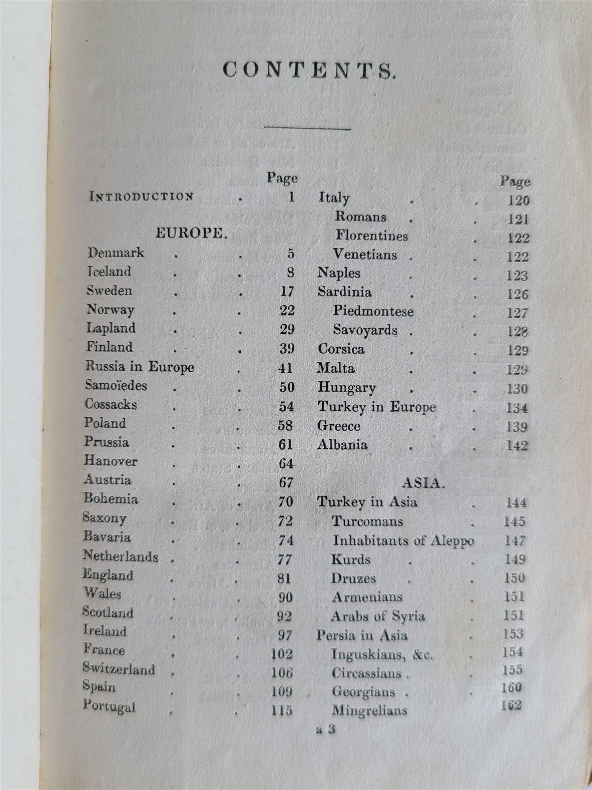 The descriptions of countries and their inhabitants begin in Europe and progress through Asia, Africa, North America and South America, to Plynesia.