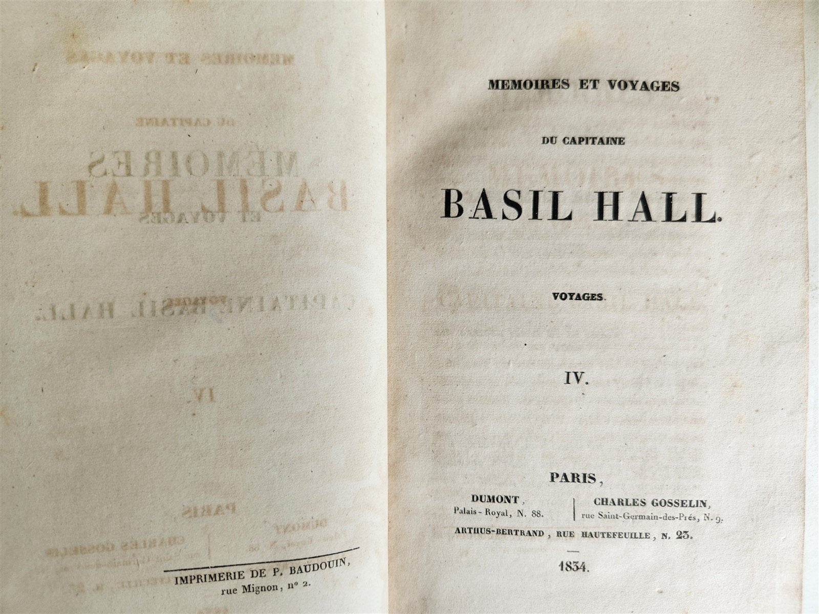 1834 MEMOIRES & VOYAGES of CAPTAIN BASIL HALL antique 4 VOLUMES w/ provenance