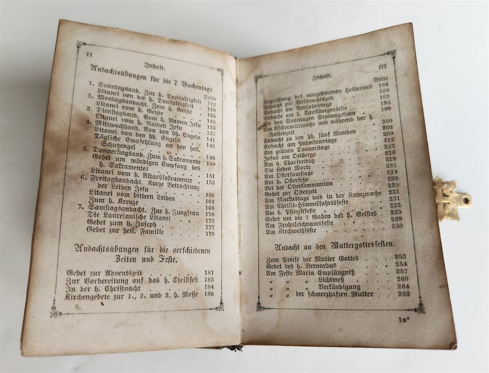 1840s PRAYER BOOK in GERMAN antique VELVET BINDING w/ METAL DECORATIONS