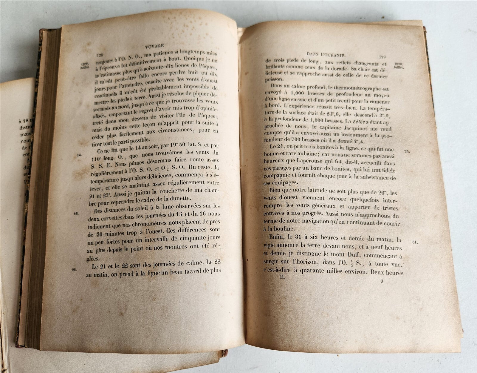 VOYAGE AU POLE SUD et dans L'OCEANIE Paris, n.d. (c. 1840s)3 volumes (1-3)Size 6 by 9 1/4 inchesNot illustratedOriginal cloth over marbled boards, title in gilt to the spinesSome wear of bindings, foxing, a few occasional faded dampstainsText in French======================================Please see my other auctions Thank You