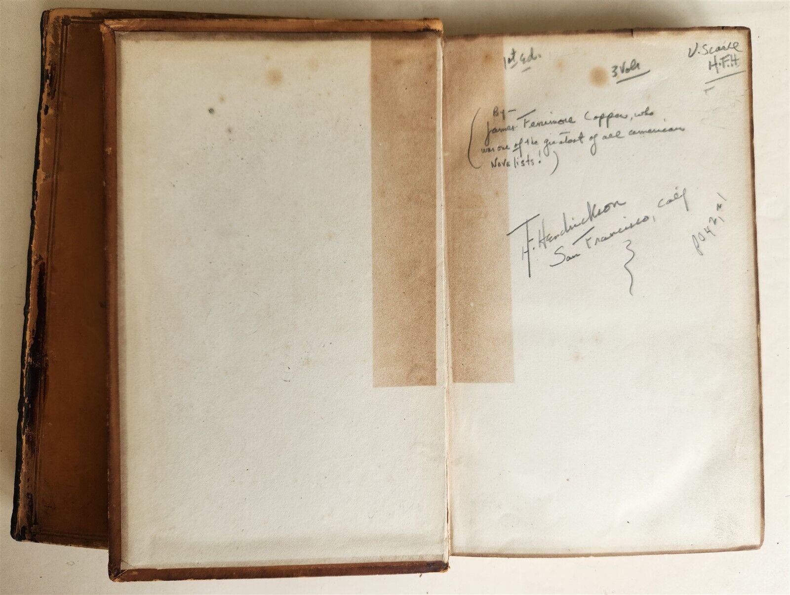 THE TWO ADMIRALS . A TALE OF THE SEA by Fenimore CooperLondon: Richard Bentley; 18423 volumes (complete set)First English editionOriginal full tan calf, boards ruled in blind, spines ruled and stamped in gilt in compartments, gilt red morocco lettering pieces, speckled edges.Light shelf wear, spines abradedSize 5 by 8"Text in English====================================================Please see my other auctions Thank You