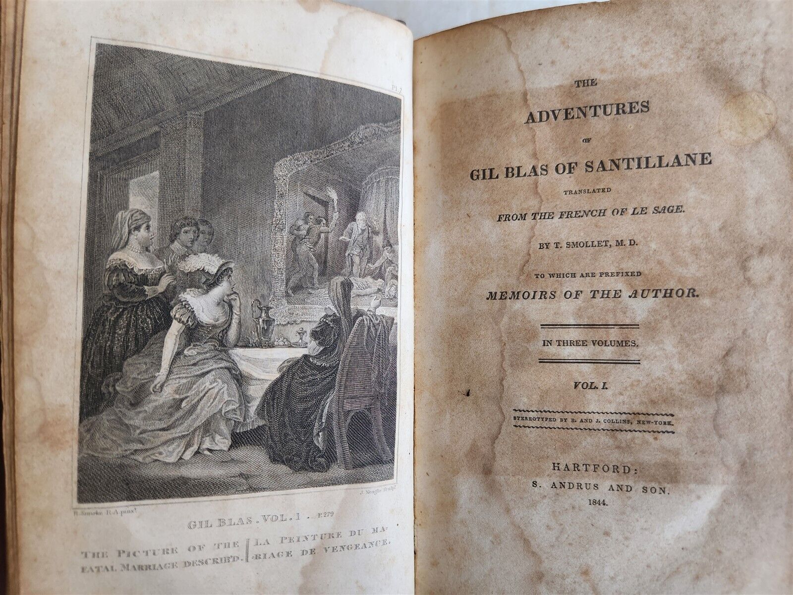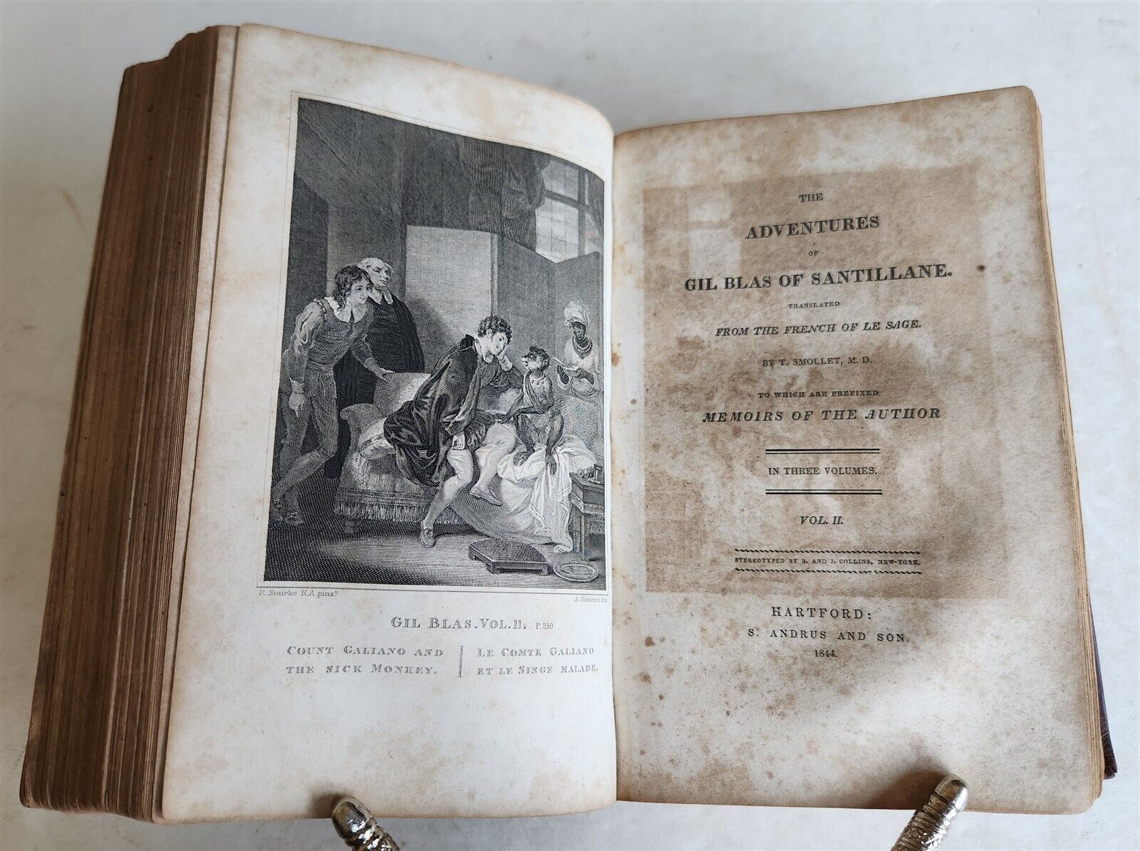 1844 ADVENTURES OF GIL BLAS antique EARLY AMERICAN BINDING HARTFORD ILLUSTRATED