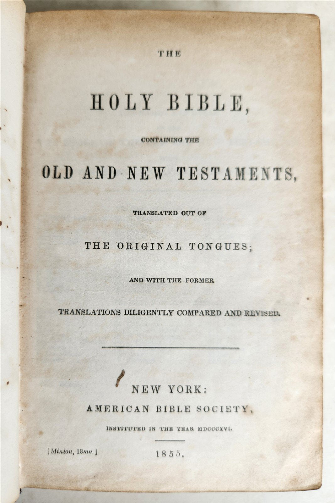 1855 BIBLE in ENGLISH antique AMERICANA personalized cover OLD & NEW TESTAMENT