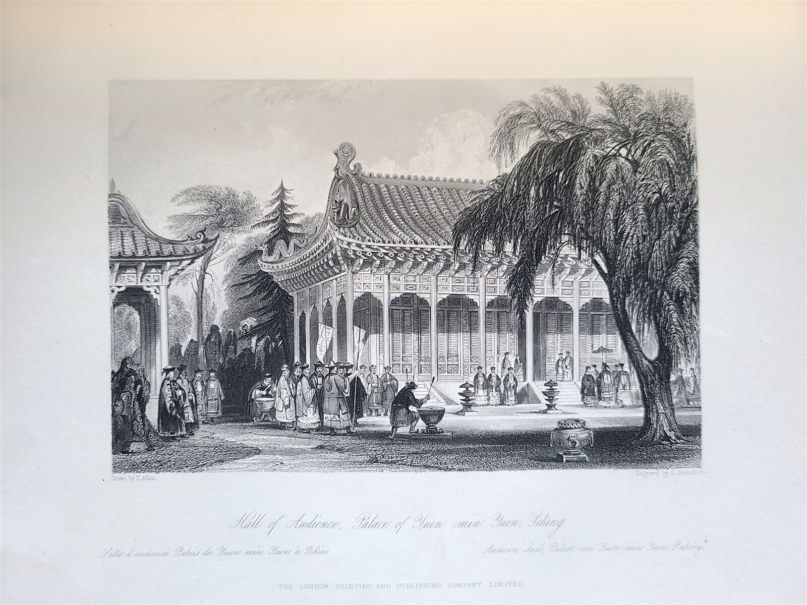 (ALLOM, Thomas) WRIGHT, George Newenham. CHINESE EMPIRE HISTORICAL AND DESCRIPTIVE by REV. G.N. WRIGHT Illustrating the Manners and Customs of the Chinese, in a Series of Steel Engravings. London and New York: London Printing and Publishing Company Ltd, [1858-59]Two volumes complete set WITH 145 FULL-PAGE STEEL-ENGRAVINGS by THOMAS ALLOMOriginal three-quarter pebbled black morocco gilt, decorative gilt stamp on front covers, raised bands, marbled endpapers.Small folio.Size 9 1/4 by 11 1/2"Some wear of bindings, very good interiorText in English================================================Please see my other auctions Thank You