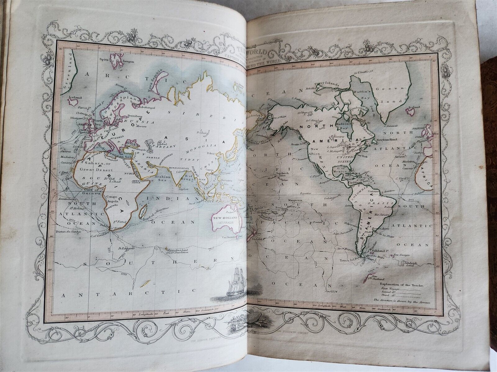 The Voyages of Captain James Cook Round the World. London and New York: John Tallis, n.d. (circa 1860.)2 volume setSmall folio: 7 1/2 by 11 1/4"With a number of plates including frontispieces and additional engraved title, several maps with hand-coloring (including two double-page),illustrations to text as well. In original publisher's red cloth, repaired, with some discoloration to the cloth visible on the photosInterior is clean , good Text in English====================================