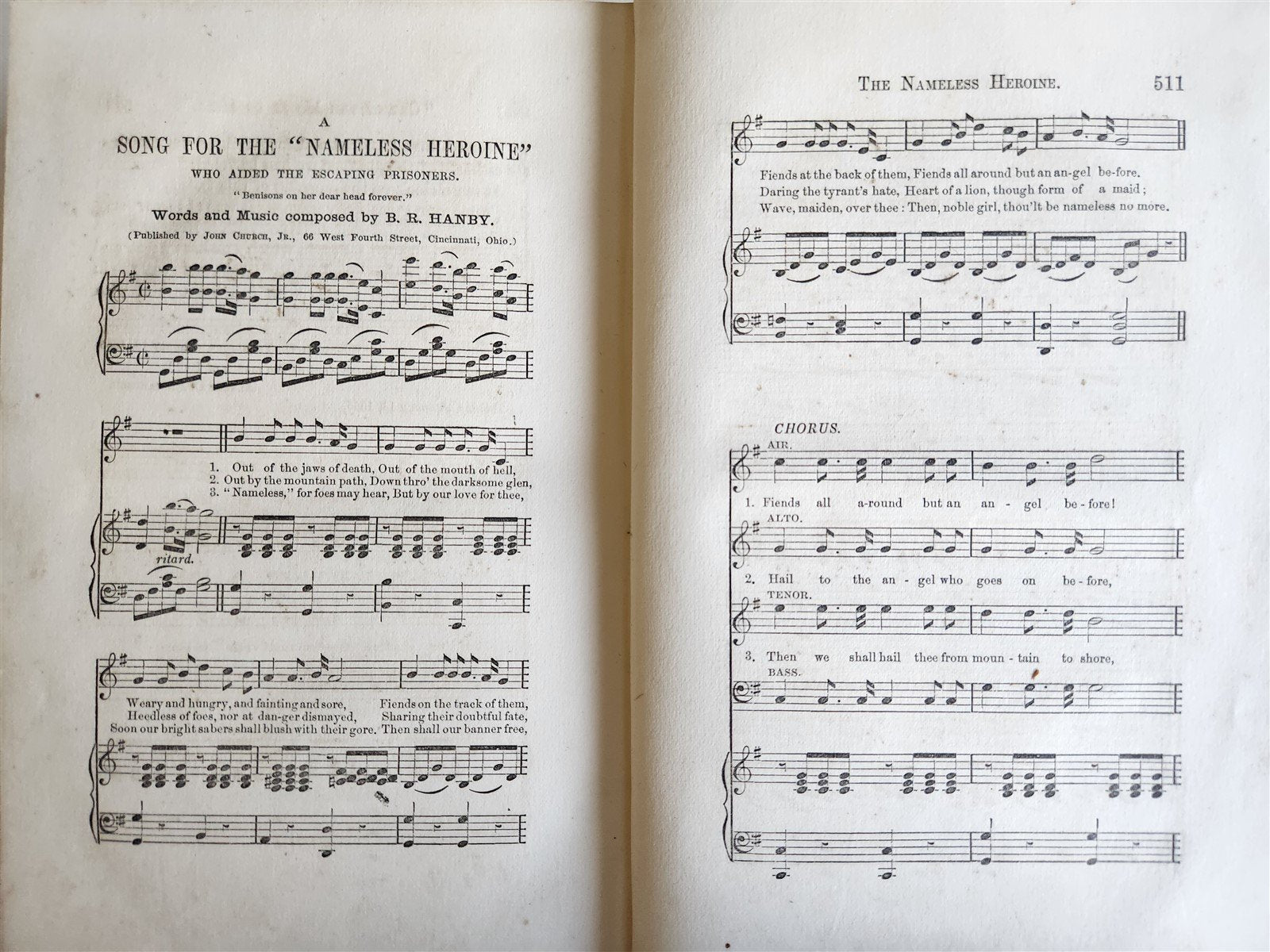 Albert Richardson (1833-1869) was a New York Tribune reporter who travelled to the battlefields to report on the Civil War and was captured as a Union spy at Vicksburg in 1863. After 20 months imprisonment, he escaped from Salisbury prison, and together with fellow journalist Junius Henry Browne travelled 400 miles through hostile country to safety, reaching the Union lines in January 1865. The book ends with the words and music to 'A Song for the "Nameless Heroine" Who Aided the Escaping Prisoners', by B. R Hanby.