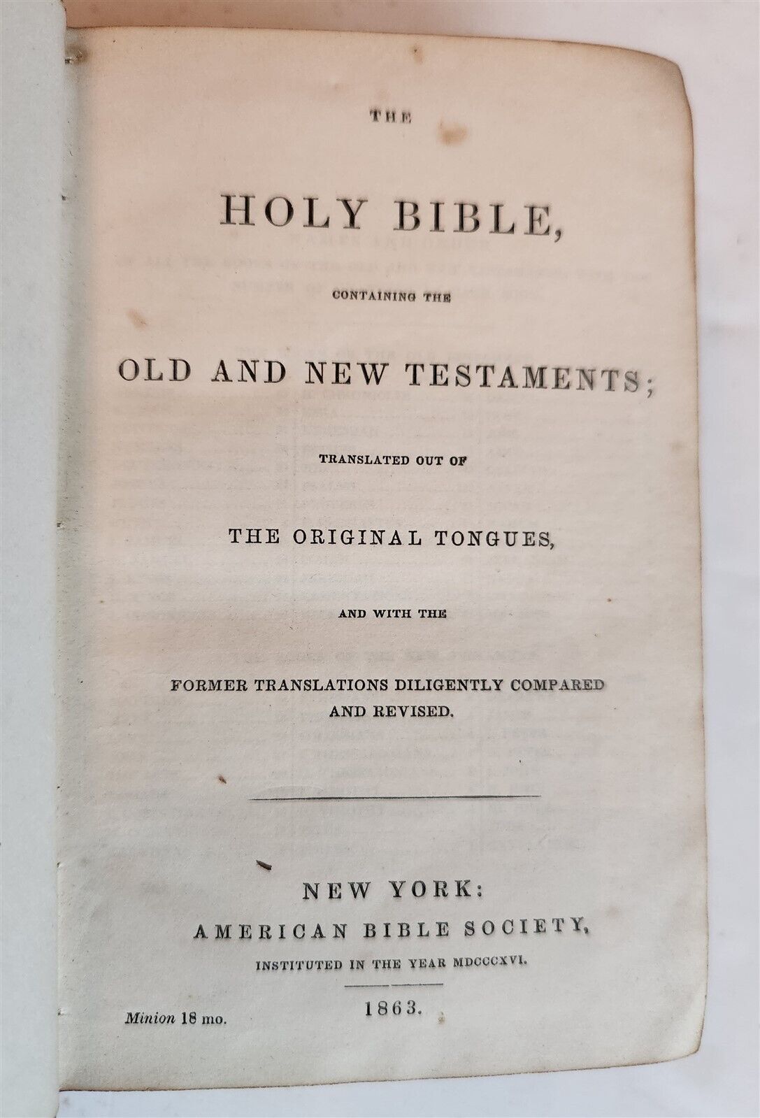 1863 BIBLE in ENGLISH antique CIVIL WAR ERA NEW YORK Americana