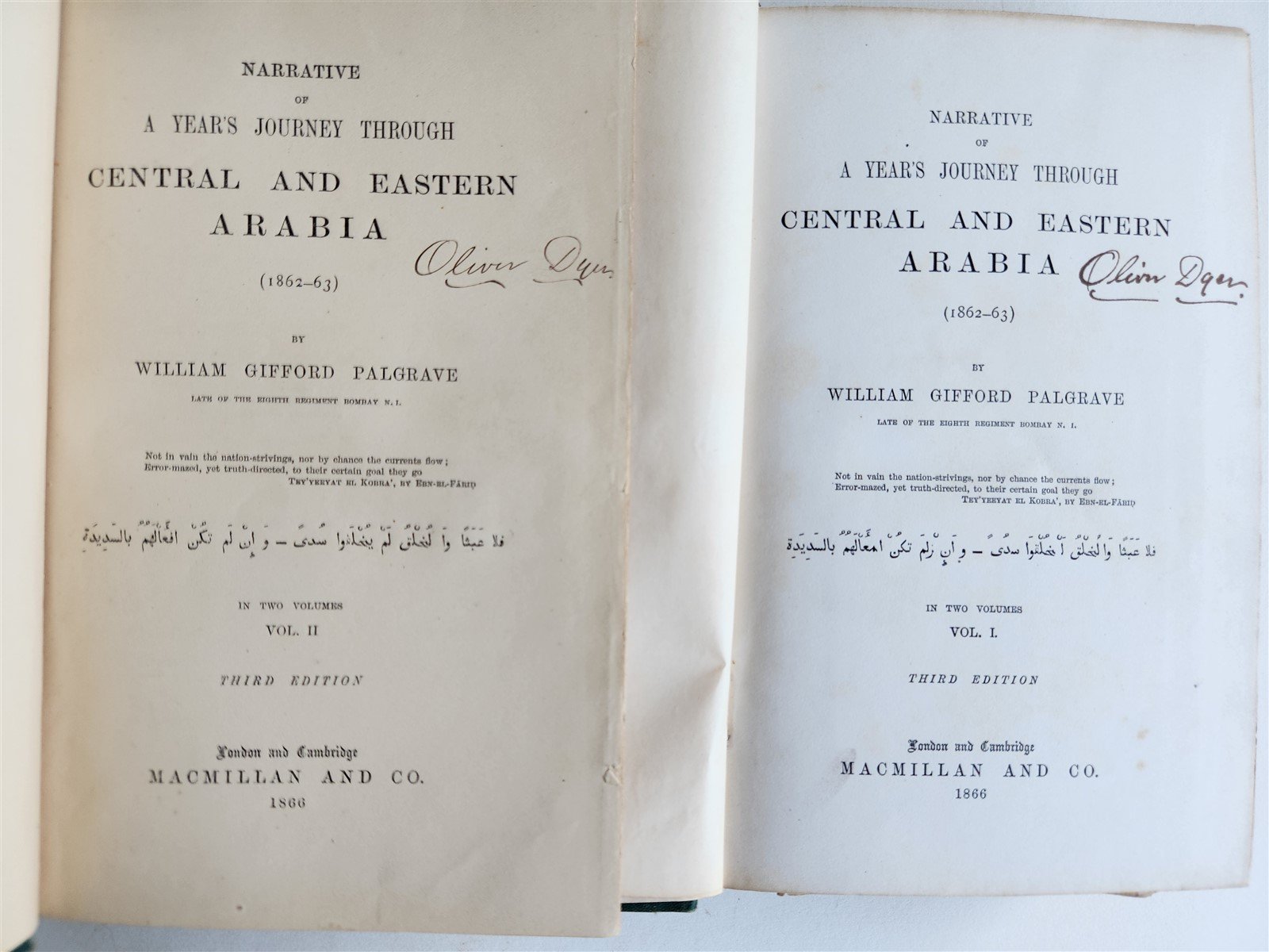 1866 A YEAR'S JOURNEY THROUGH CENTRAL & EASTERN ARABIA antique 2 VOLS w MAP