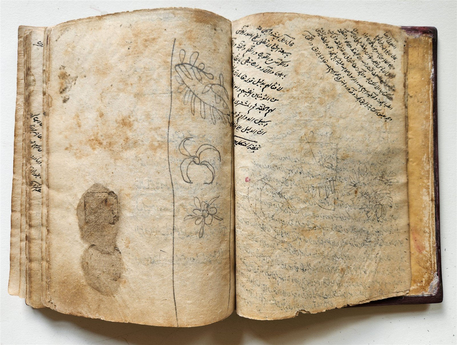 Some wear, some pencil drawings, mostly at the margins, a few leaves with text damage