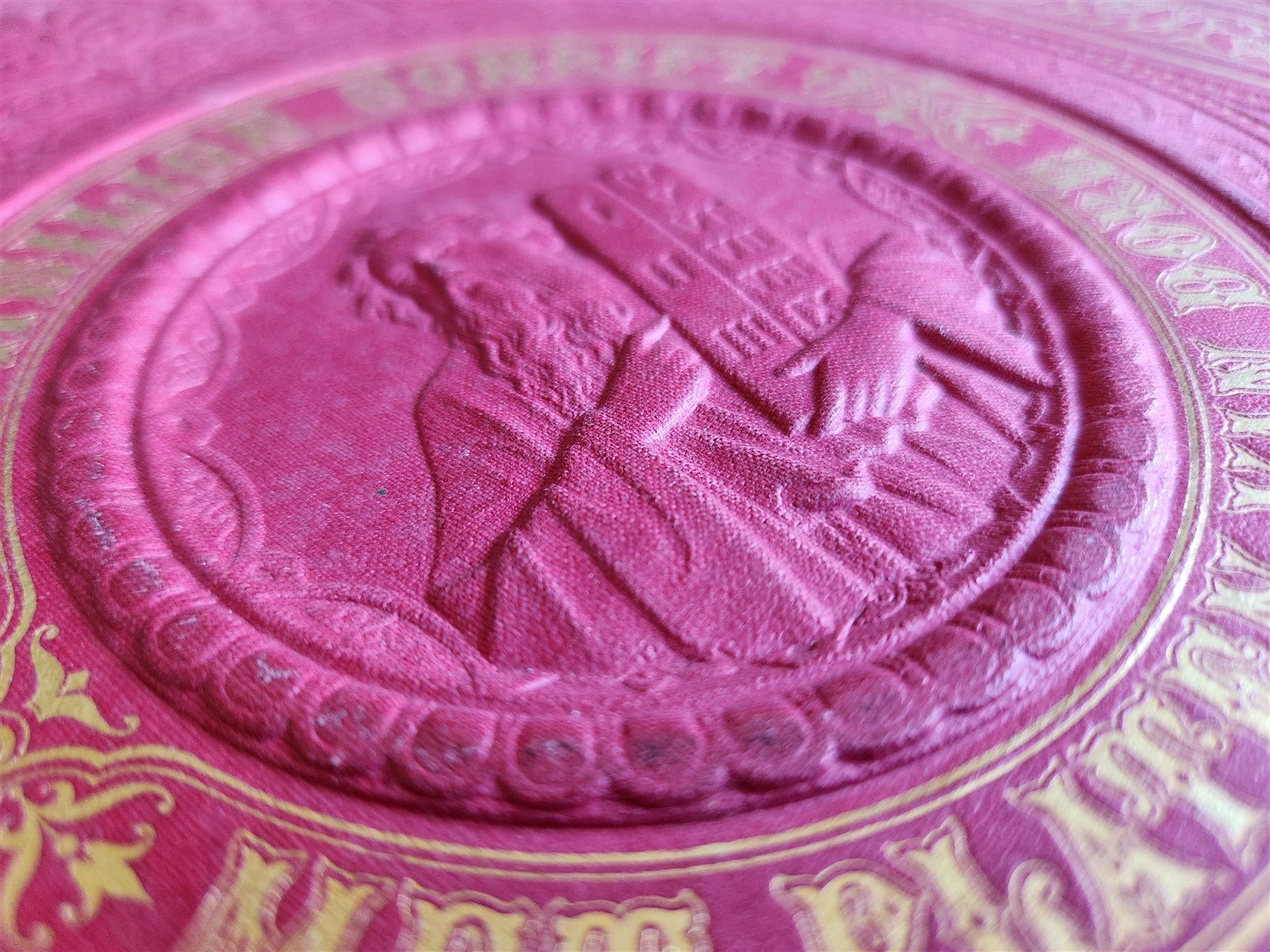 Original half-leather over embossed cloth boards, decorated with blind stamping
