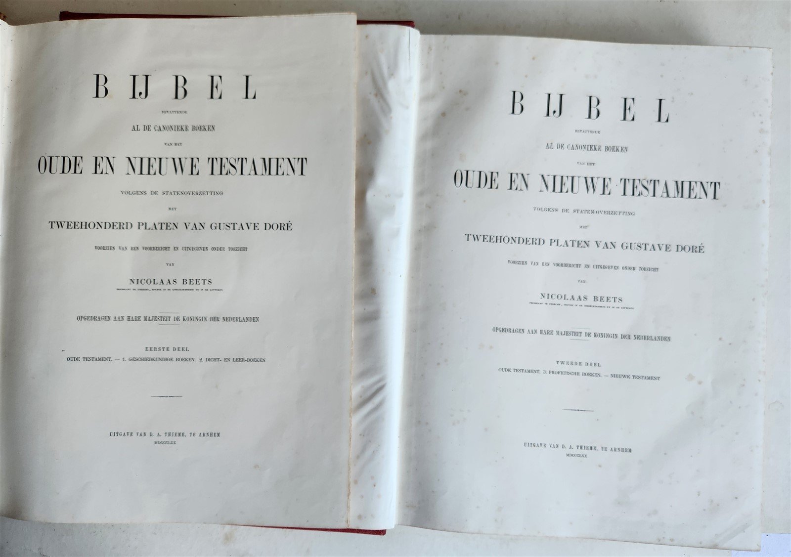Bijbel bevattende al de canonieke boeken van het oude en nieuwe testament volgens de Statenoverzetting met tweehonderd platen van Gustave Doré voorzien van een voorbericht en uitgegeven onder het toezicht van Nicolaas Beets, (...)