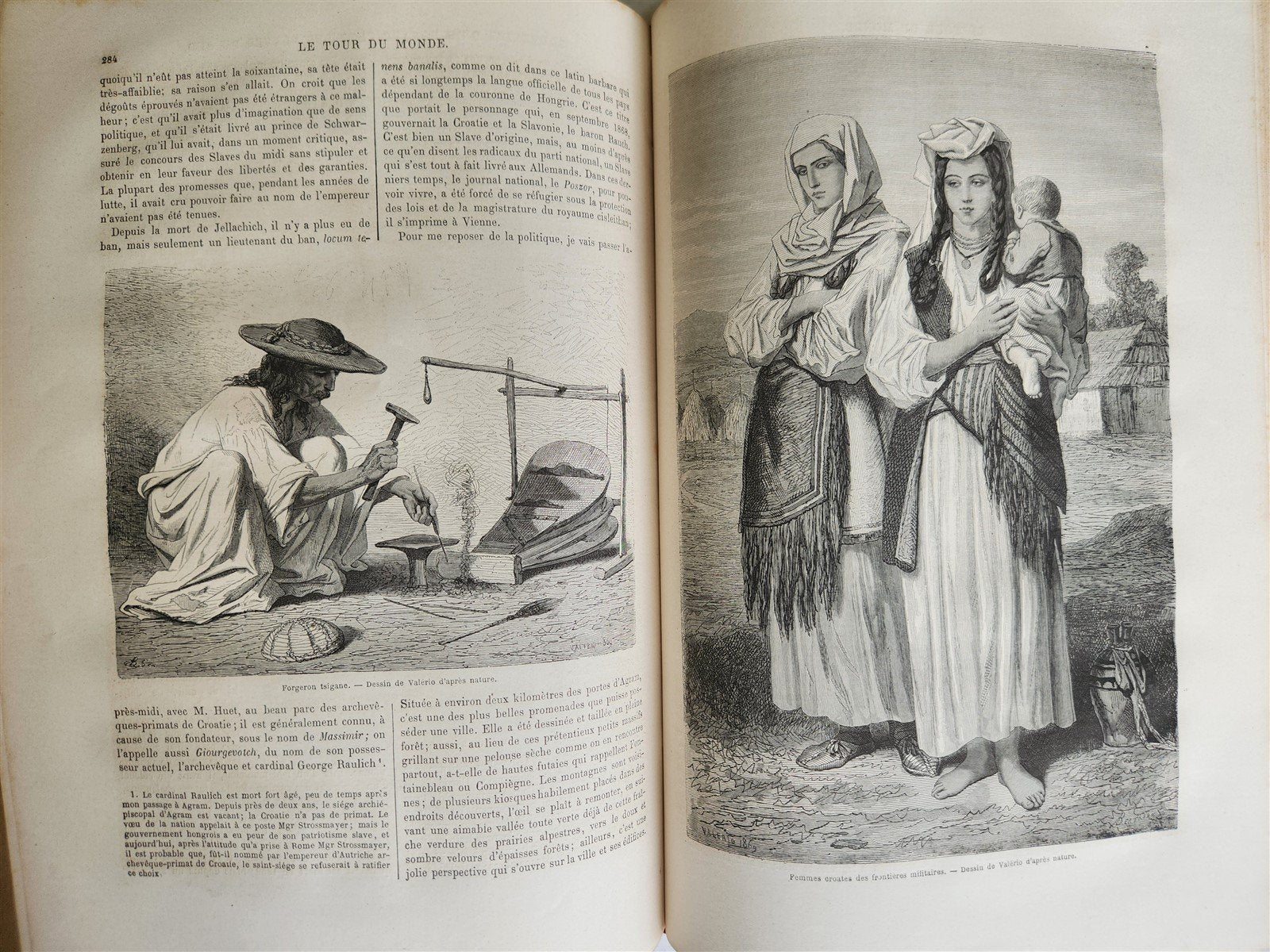 1870 HISTORY of VOYAGES ILLUSTRATED antique CROATIA BOSNIA INDIA FLORIDA AFRICA