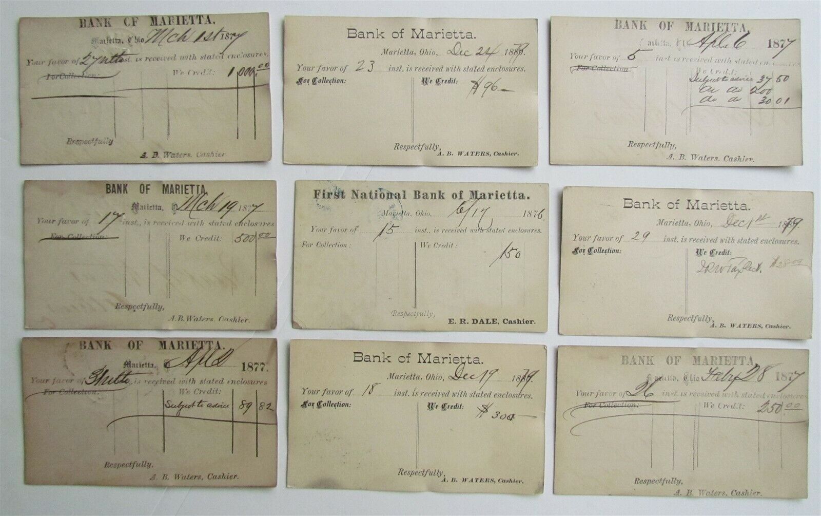 1870s-90s LOT of 9 BANKS of MARIETTA OHIO ANTIQUE STATEMENT CARDS POSTCARDS