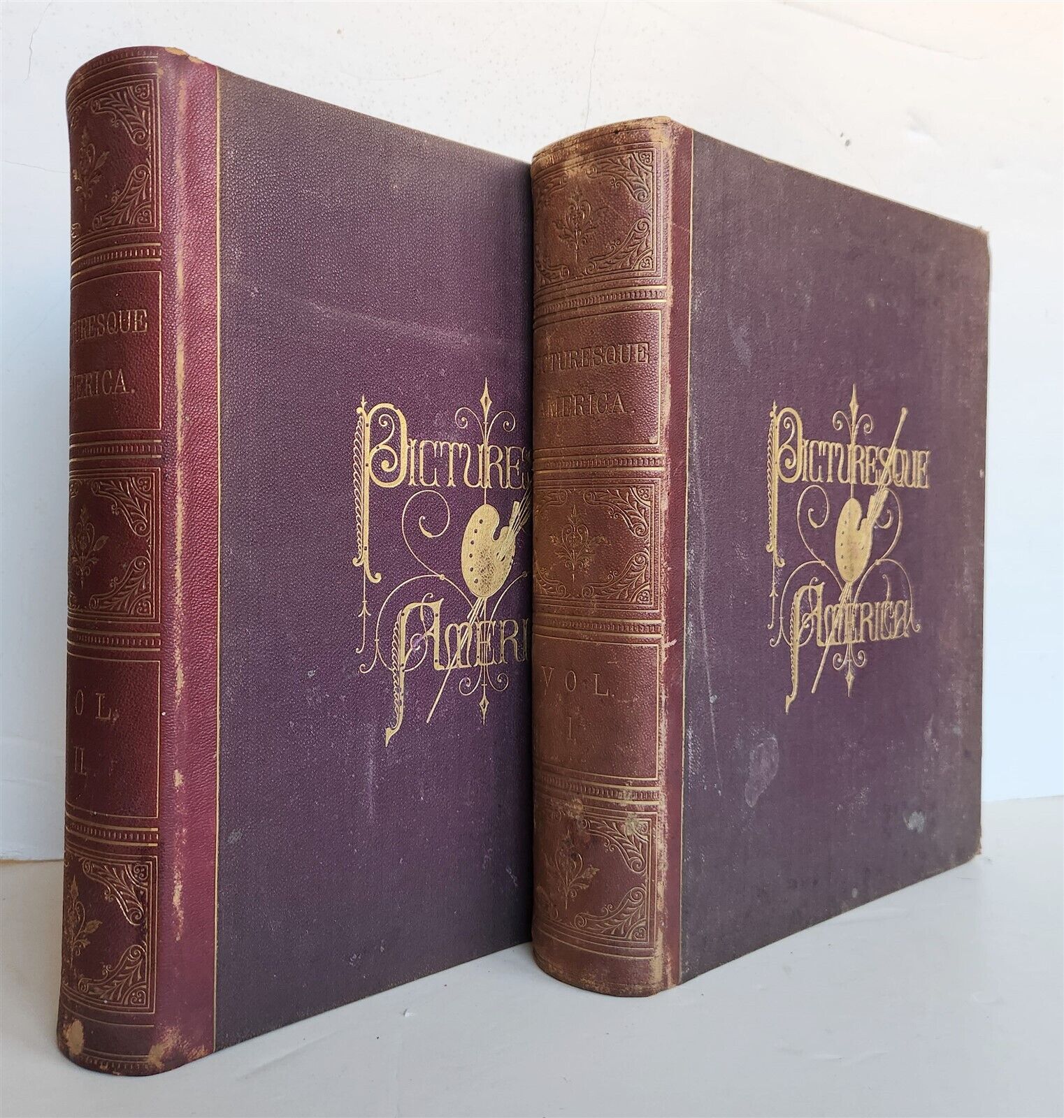 1874 PICTURESQUE AMERICA by WILLIAM BRYANT 2 FOLIO VOLUMES ILLUSTRATED antique