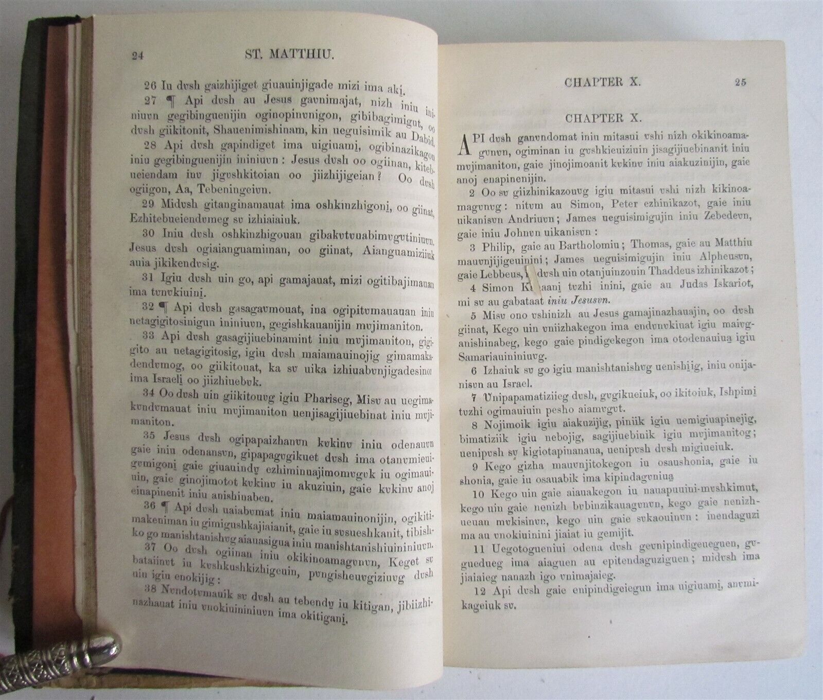 1875 BIBLE in LANGUAGE of OJIBWA INDIANS NEW TESTAMENT antique EXTREMELY RARE