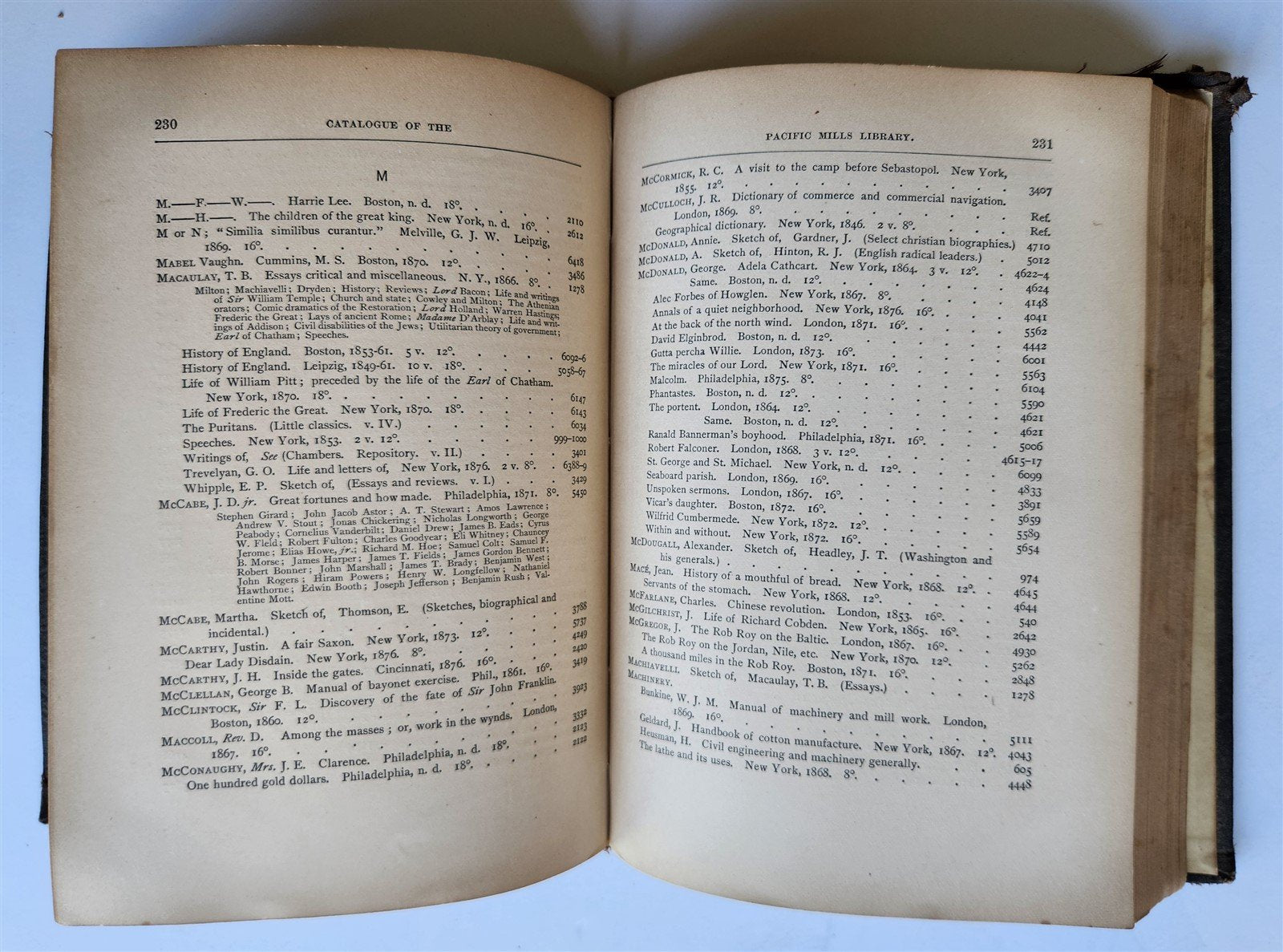 1876 CATALOGUE of the PACIFIC MILLS LIBRARY antique AMERICANA scarce