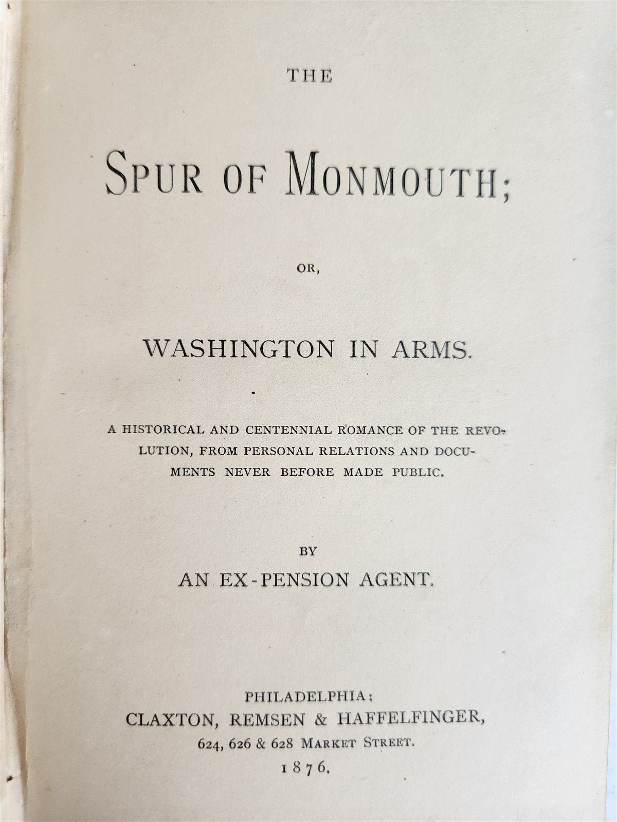 1876 THE SPUR of MONMOUTH or WASHINGTON IN ARMS antique AMERICANA