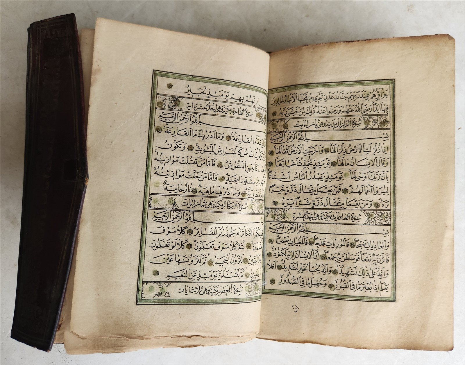 1877 KORAN MANUSCRIPT antique QURAN illuminated