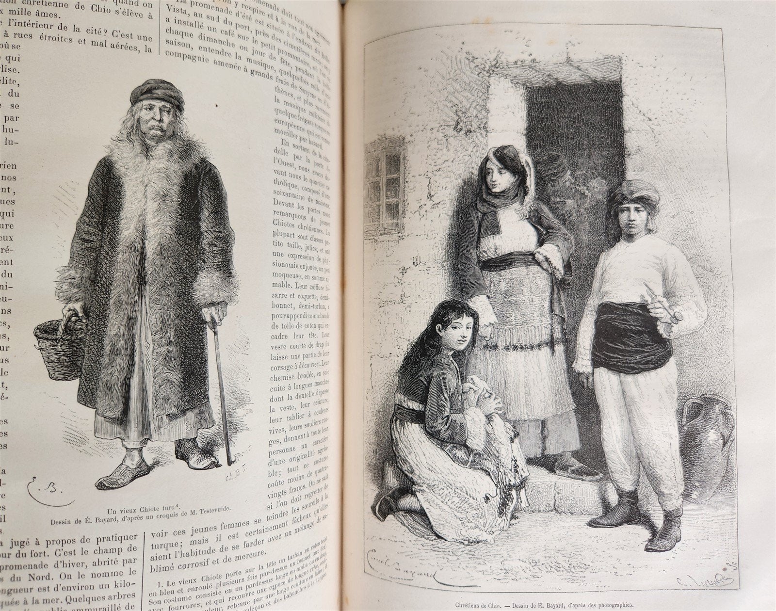 Interesting and richly illustrated magazine with numerous travel reports on AFRICA (STANLEY & LIVINGSTON VOYAGES TO CONGO and ZANZIBAR), EASTER ISLAND and CHILOE ISLAND (CHILE), CHIO ISLAND (GREECE), NETHERLANDS, GABON, NORTH POLE