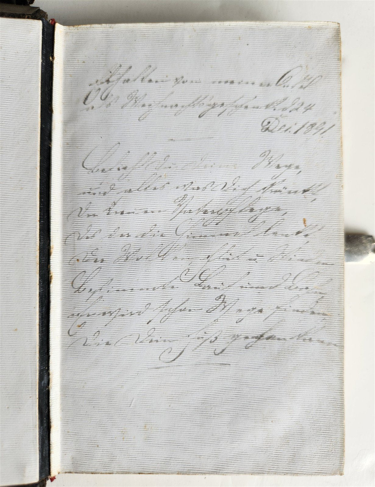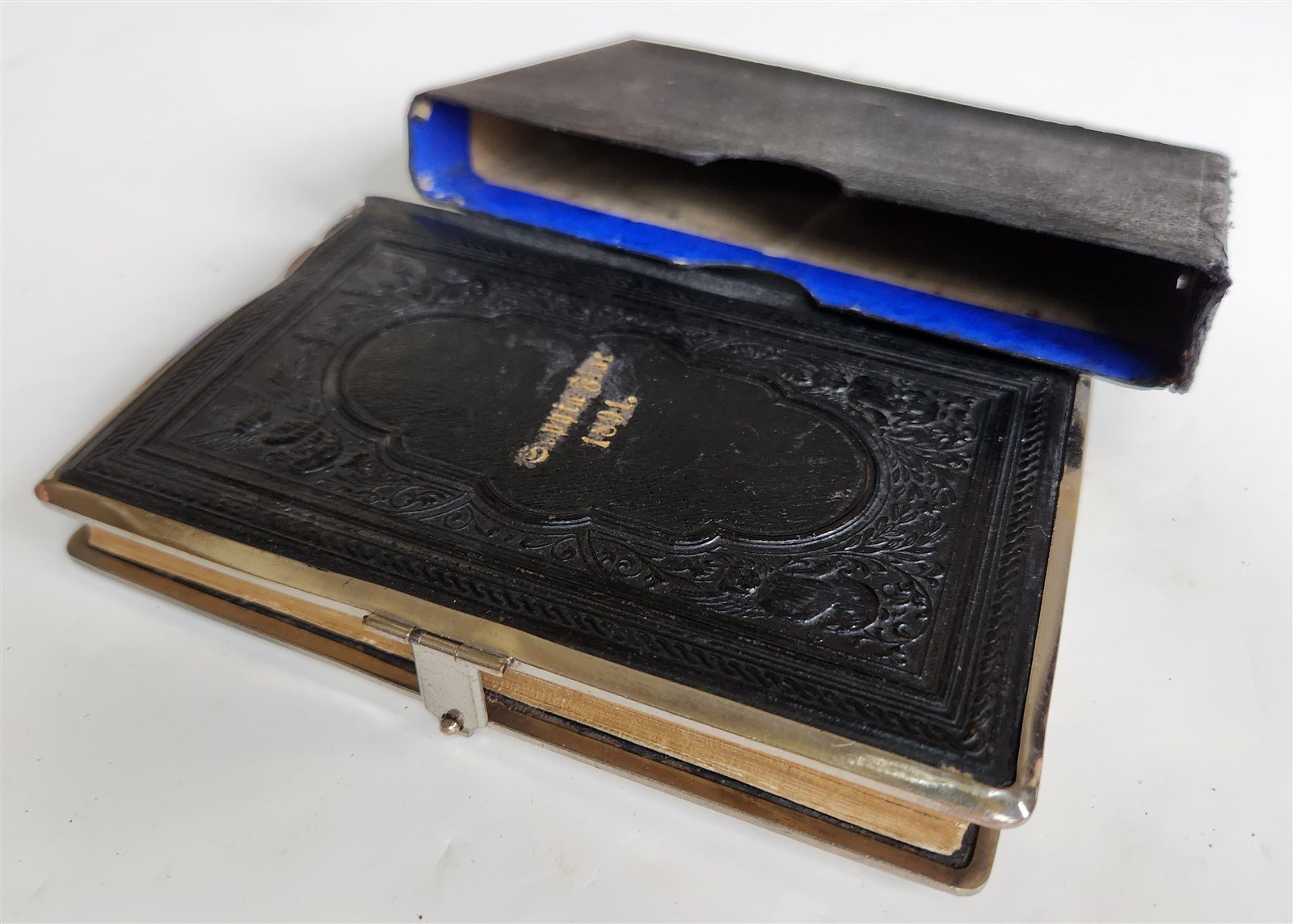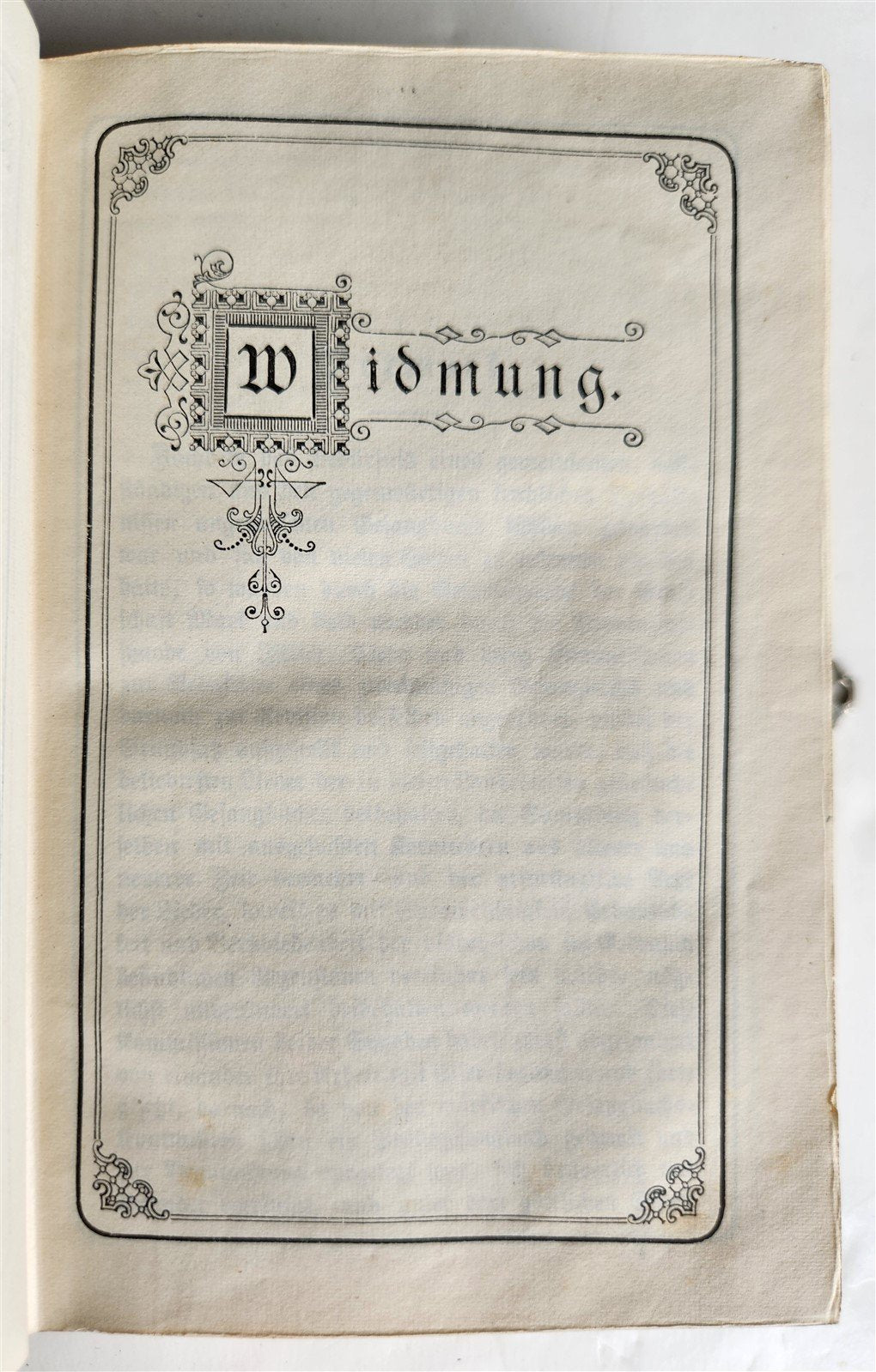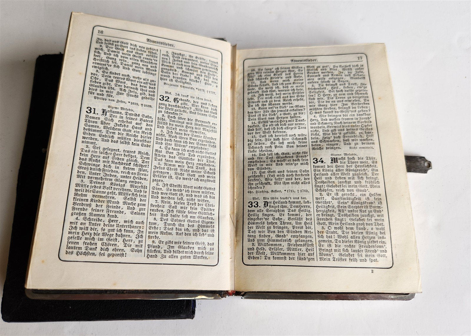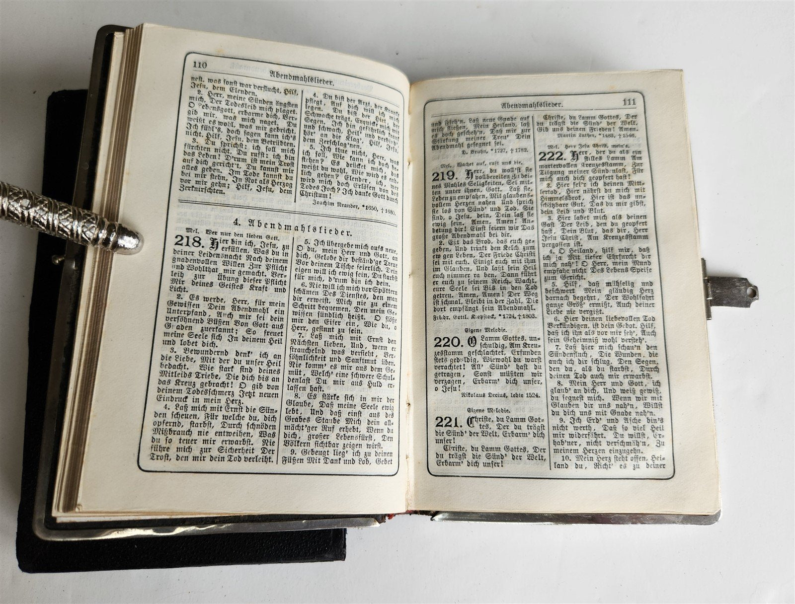 1880s HYMNAL in GERMAN antique DECORATIVE LEATHER BINDING w/ METAL EDGES