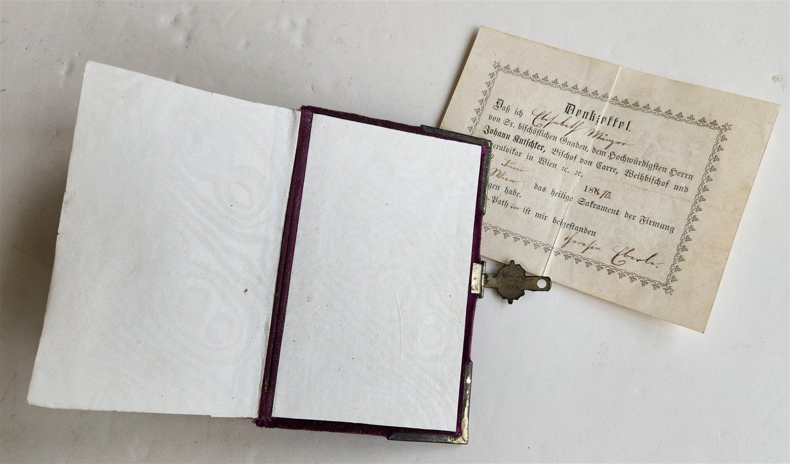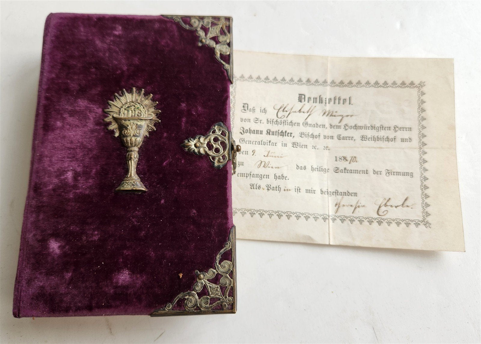 1880s PRAYER BOOK w/ VELVET BINDING in German ANTIQUE