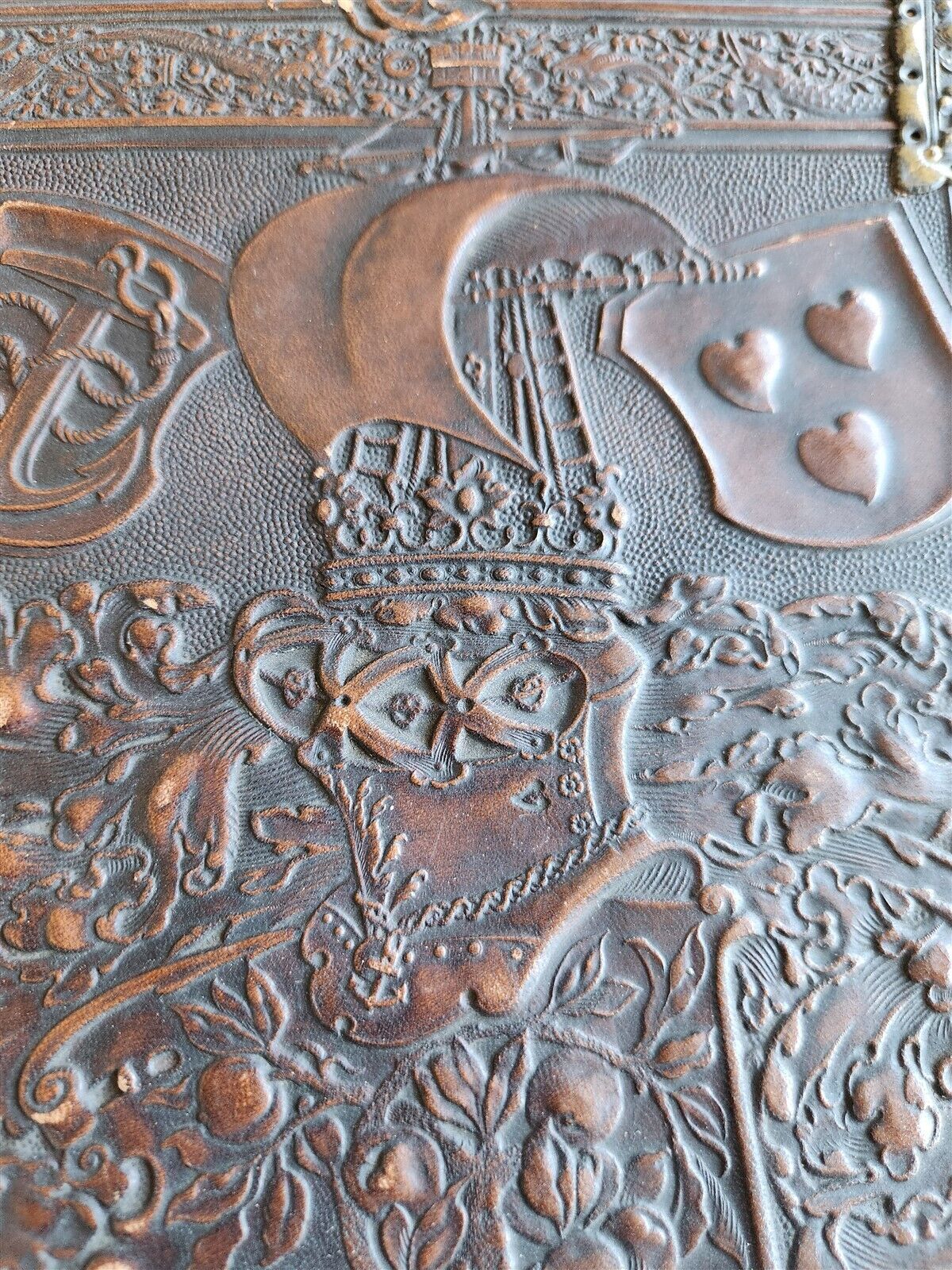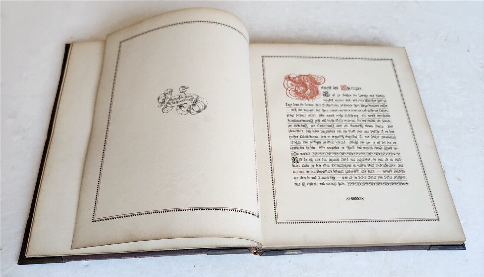 1890 FAMILY CHRONICLE w/ AMAZING BLIND-STAMPED LEATHER BINDING antique