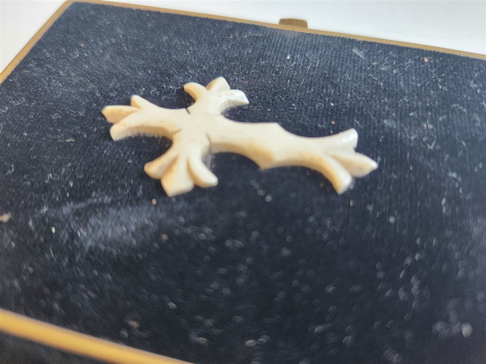 Velvet binding with applied bone cross, covers with brass edge.