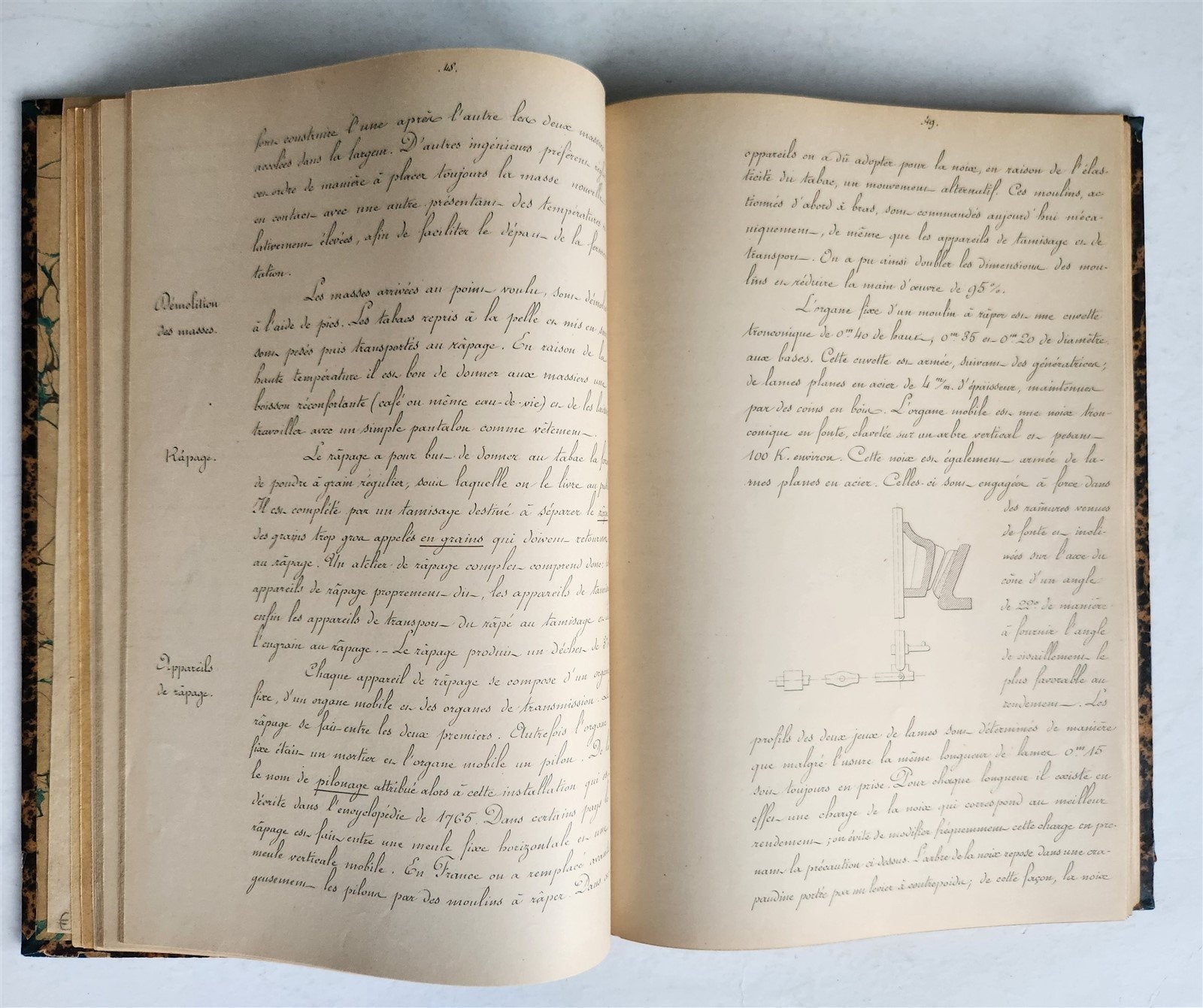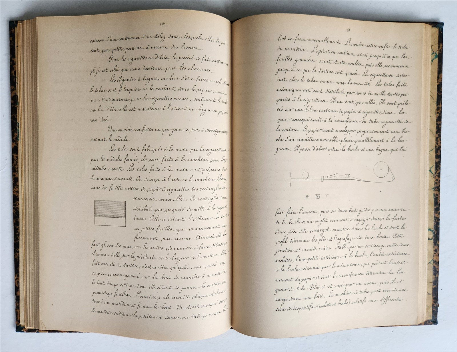 1893 TOBACCO FABRICATION COURSE antique FRENCH MANUSCRIPT COLLOTYPE illustrated