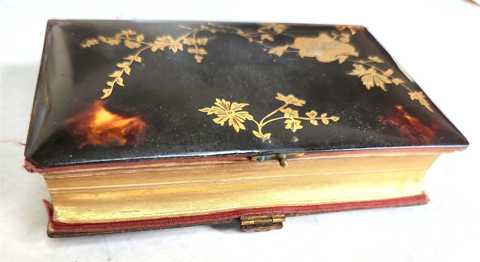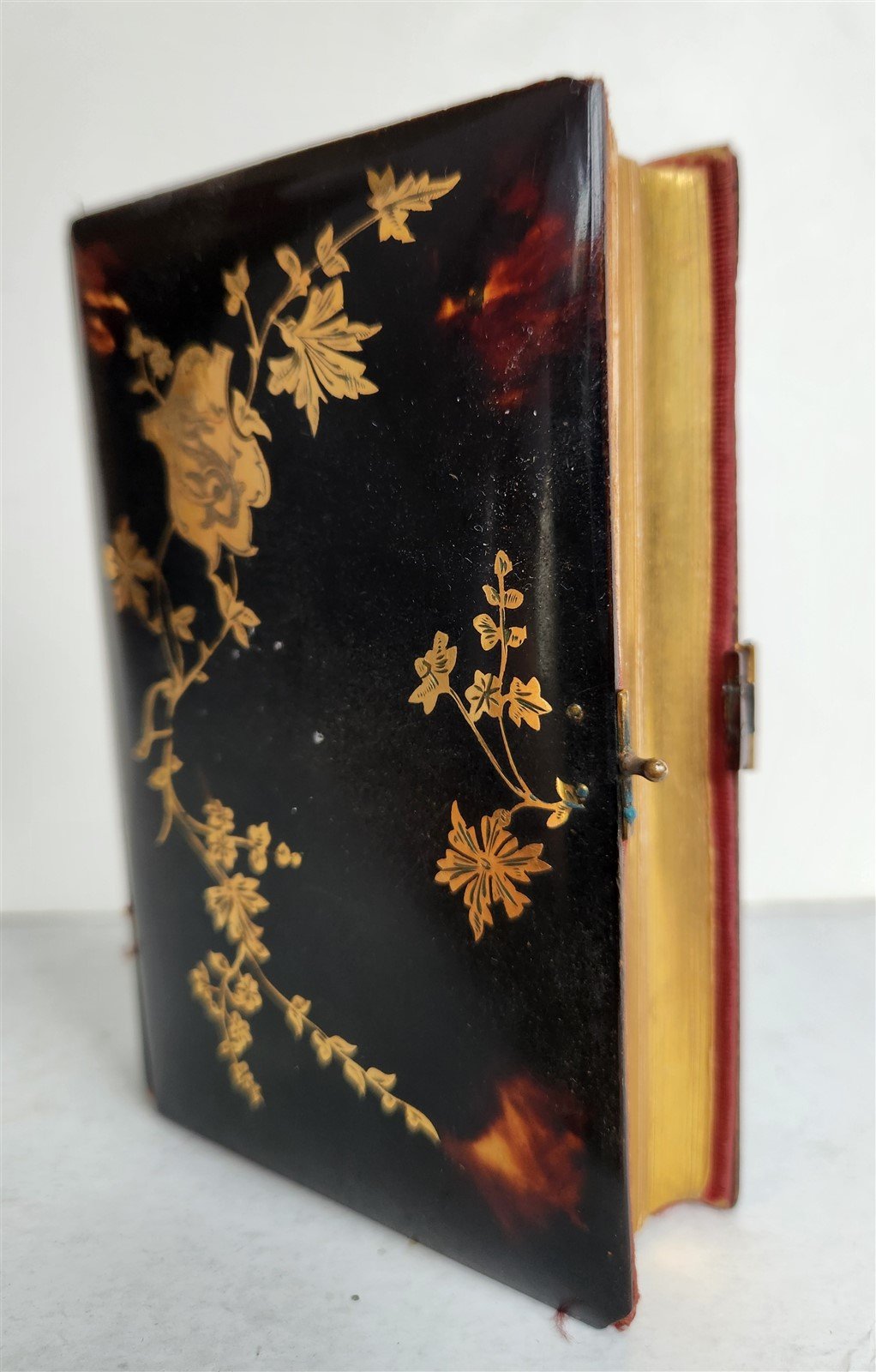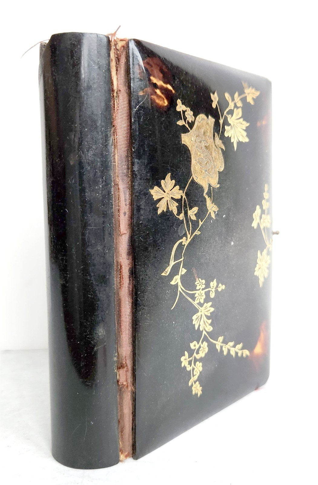 AMAZING TORTOISESHELL BINDING , FRONT COVER IS DECORATED WITH INLAID GOLD DESIGN.