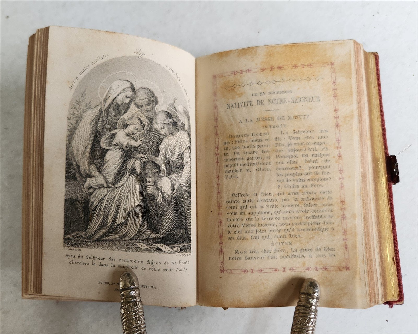 1889 TORTOISESHELL GOLD INLAY BINDING CATHOLIC PRAYER BOOK LATIN/FRENCH antique