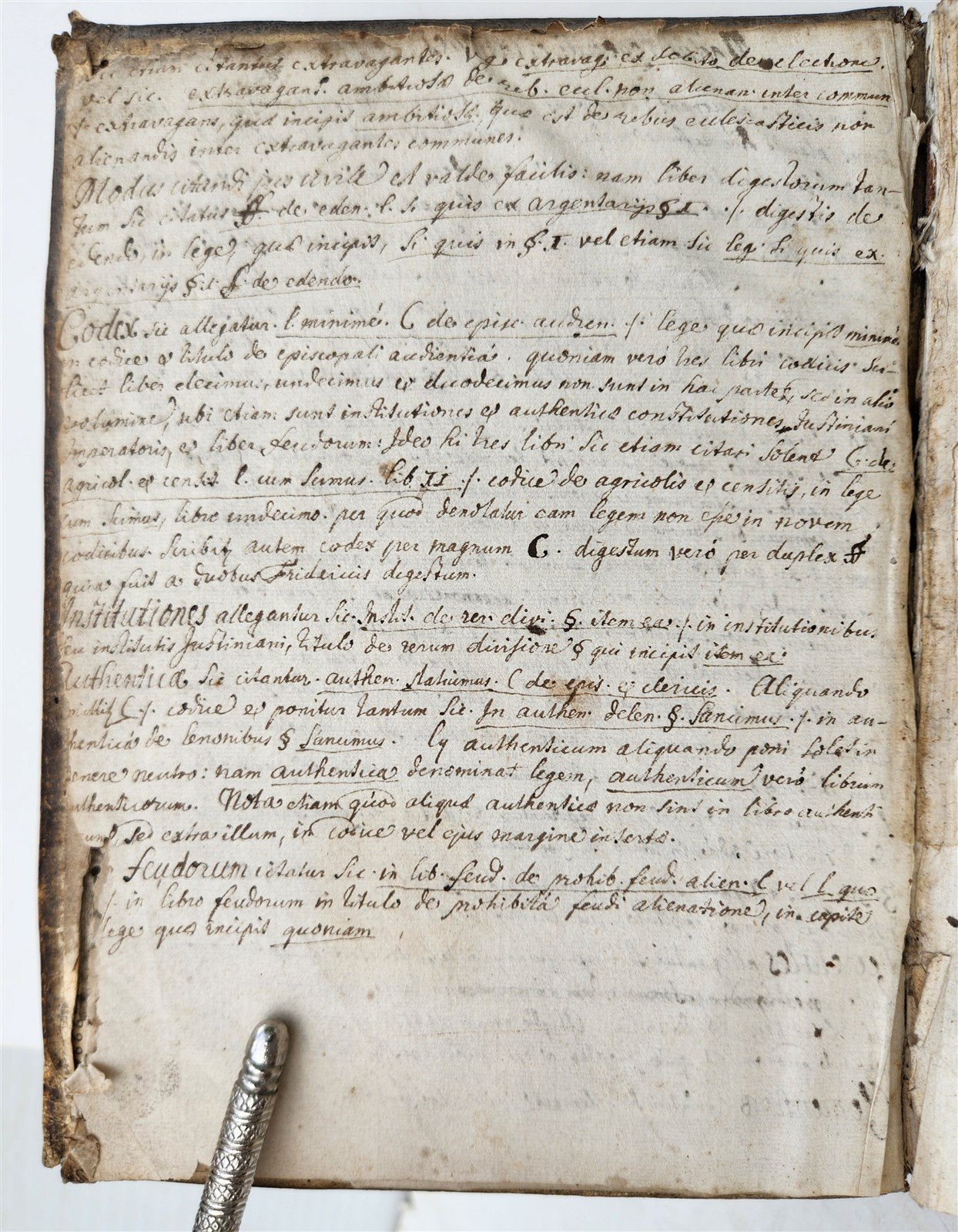 Original hand tooled pigskin, lacks ties, spine with raised bands and manuscript title label
