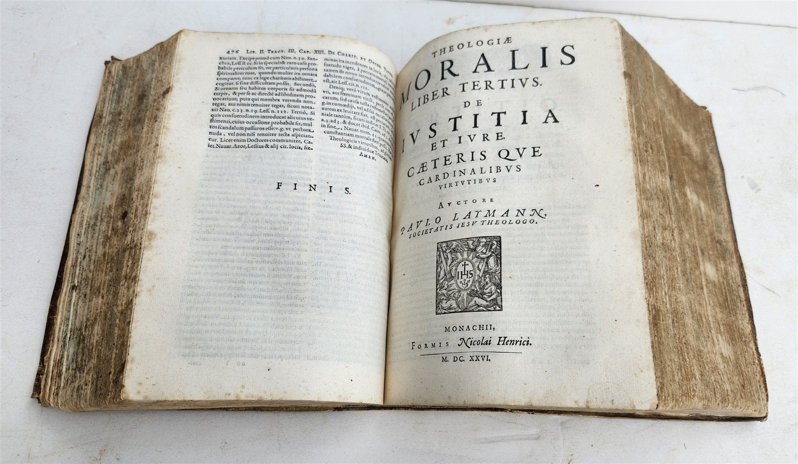 1626 THEOLOGY AGAINST WITCH TRIALS by LAYMANN antique PIGSKIN BINDING 17th cent.