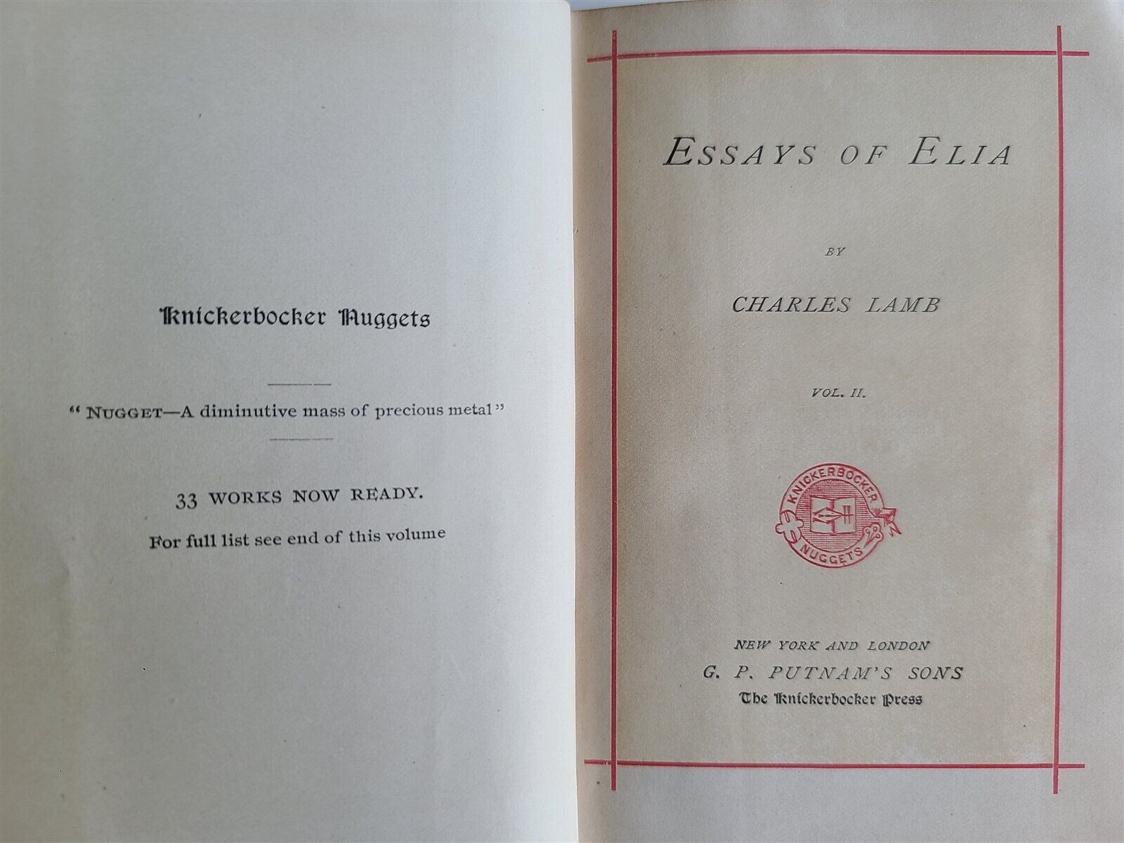 1900s ESSAYS of ELIA antique 2 VOLUMES in ENGLISH