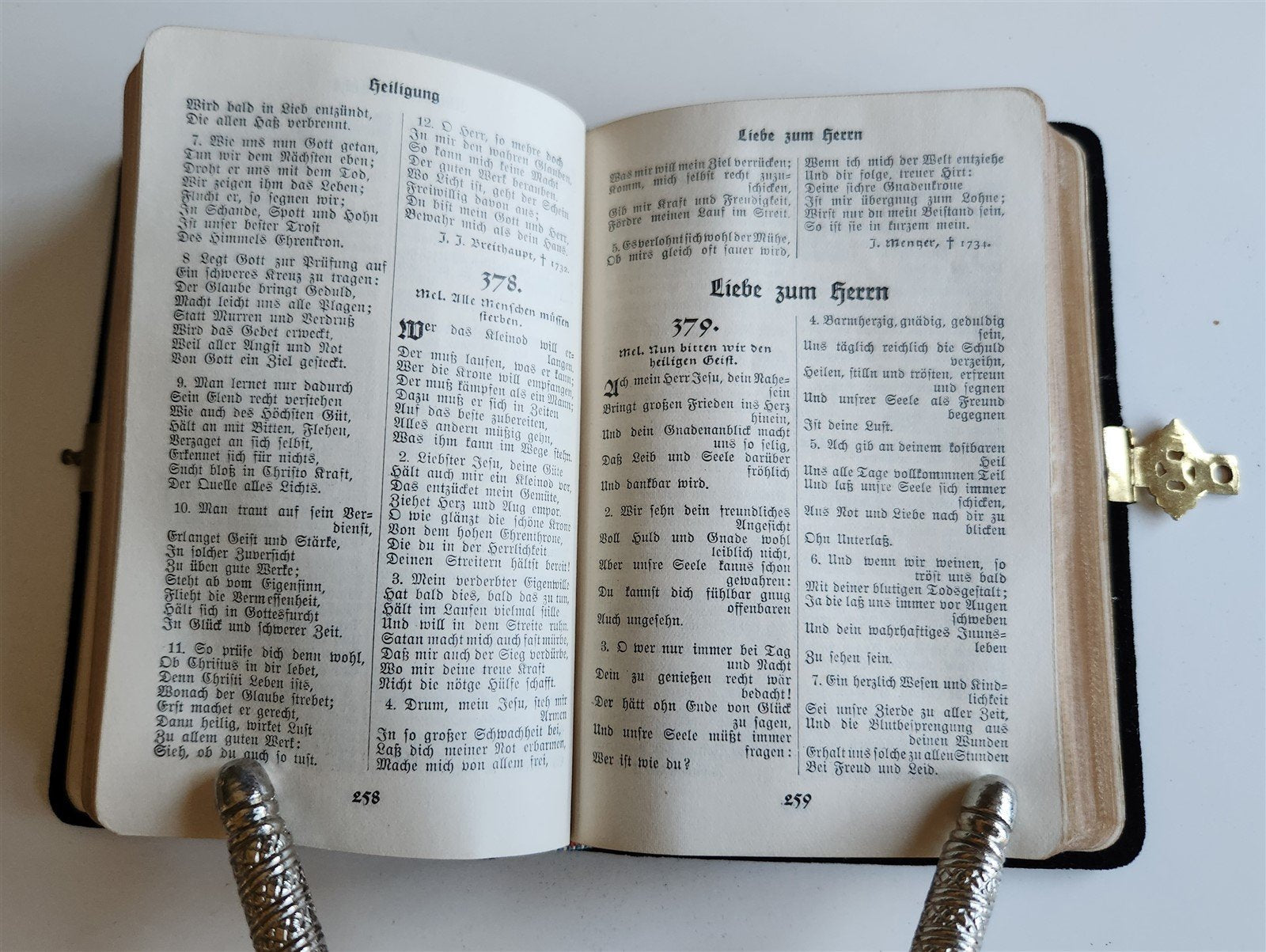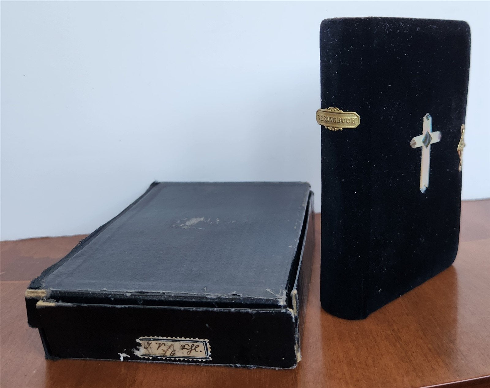 1900s GERMAN HYMNAL antique VELVET BINDING w/ MOTHER OF PEARL DECORATION