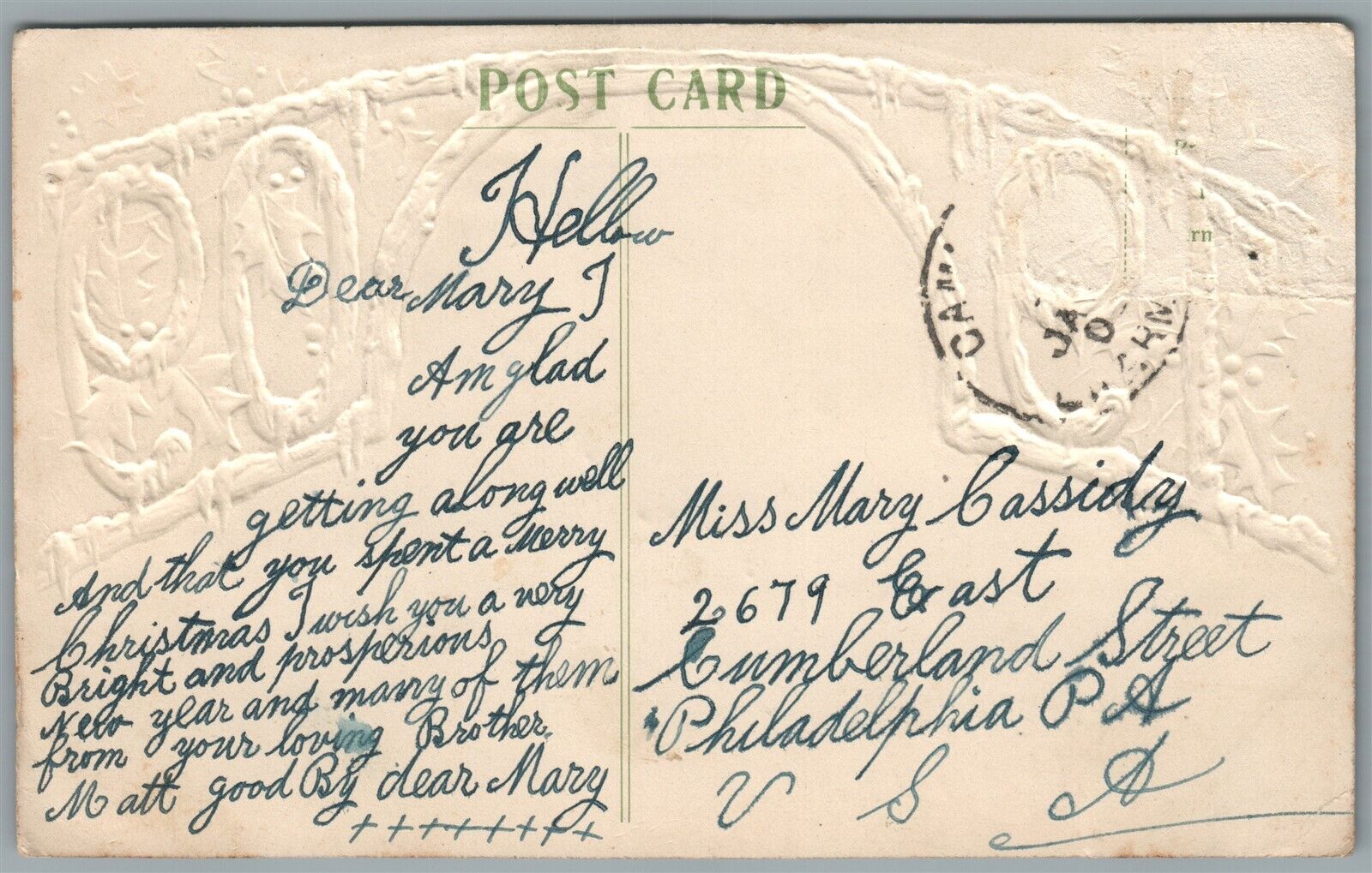 1909 HAPPY NEW YEAR CHRISTMAS ANTIQUE EMBOSSED POSTCARD