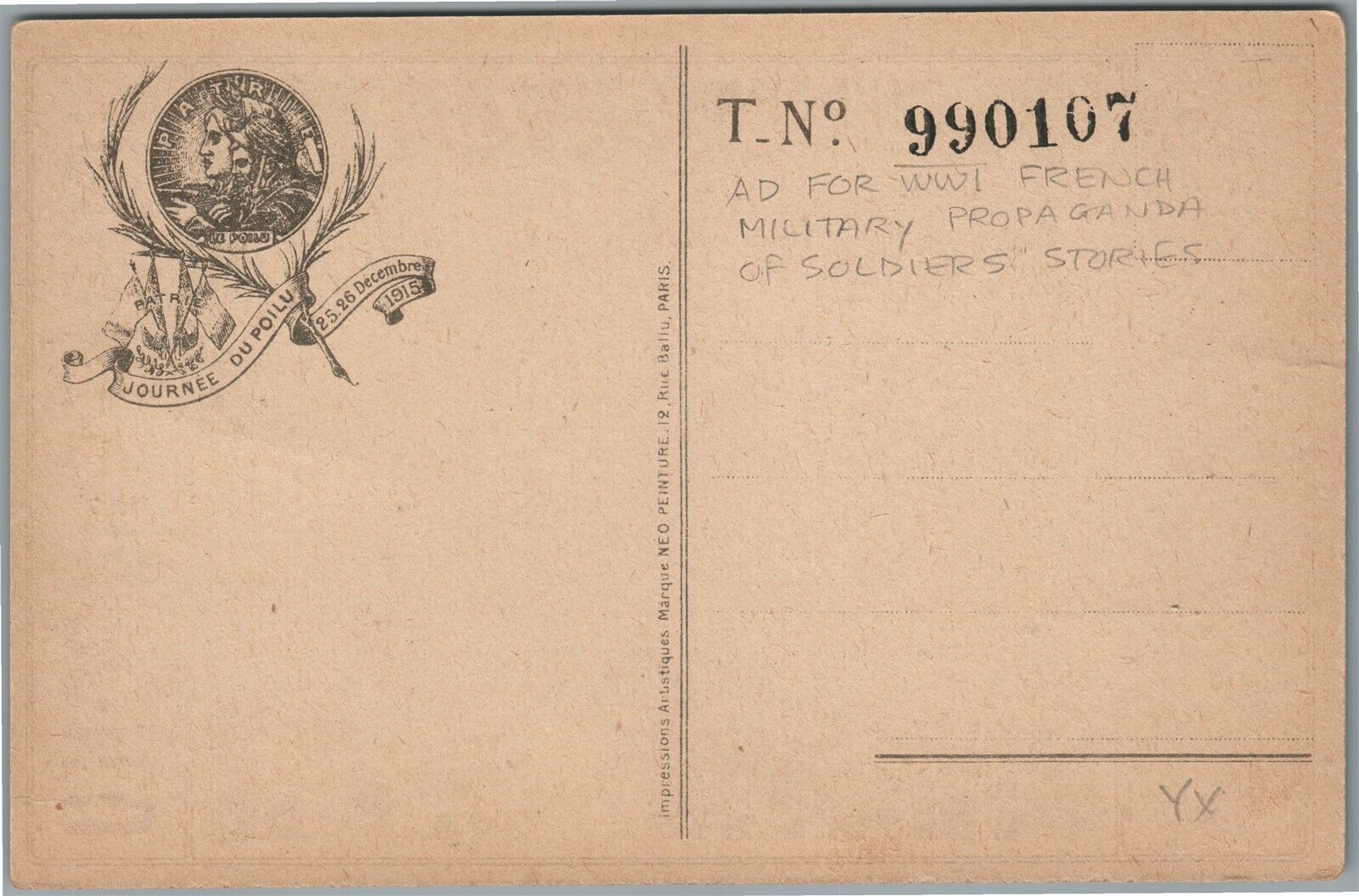 1915 AD for WWI FRENCH MILITARY PROPAGANDA of SOLDIER'S STORIES ANTIQUE POSTCARD