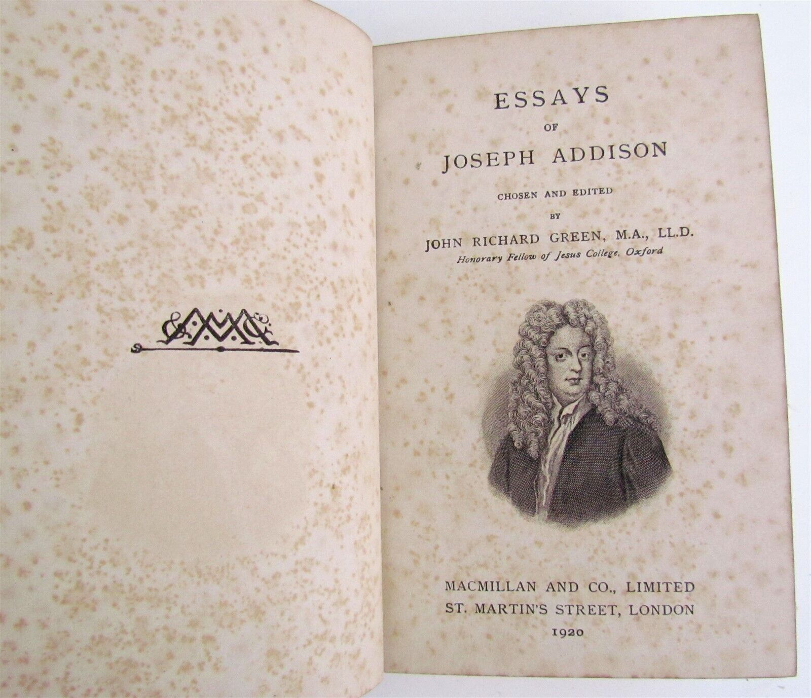 1920 ESSAYS of JOSEPH ADDISON antique DECORATIVE BINDING