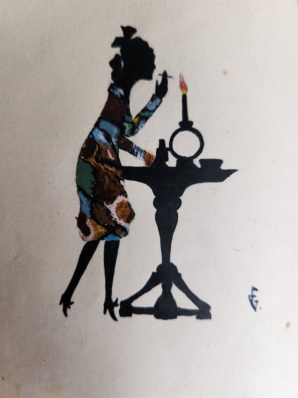 With 7 paper appliques, 13 silhouettes, 8 pencil drawings, 9 watercolors (some with ink or pencil), etc.