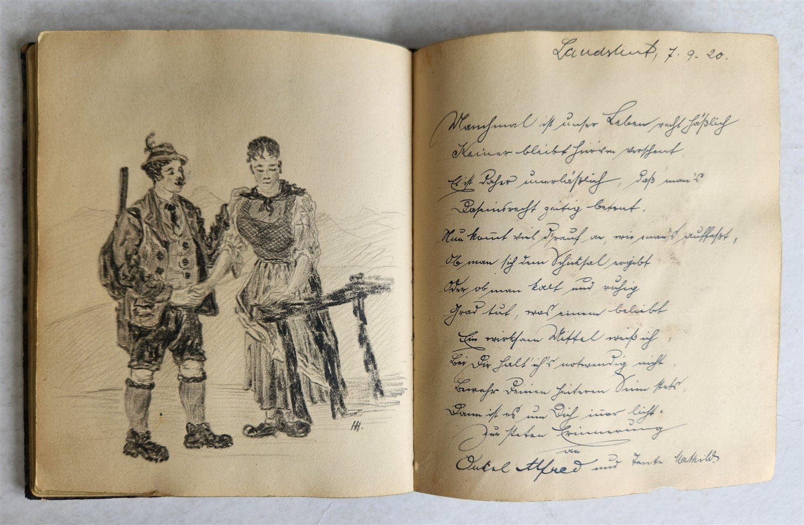 1920s POETRY ALBUM ILLUMINATED MANUSCRIPT in GERMAN antique