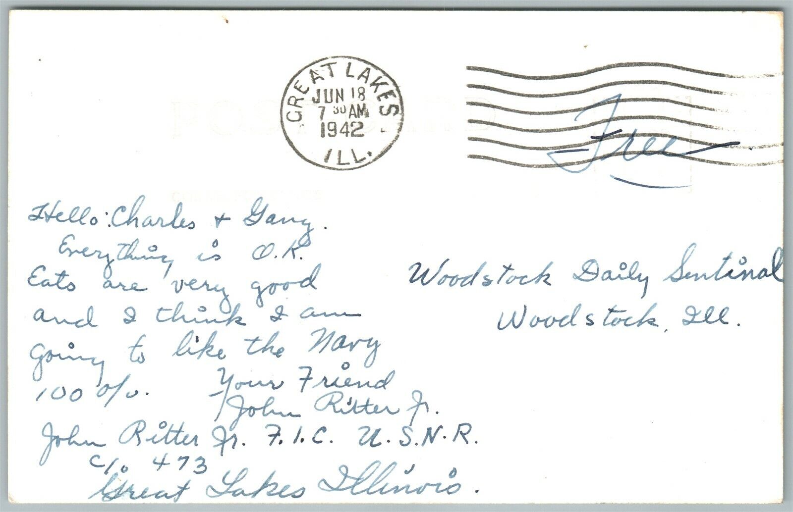 1942 VINTAGE REAL PHOTO POSTCARD RPPC LIVING USN ANCHORED TO DEMOCRACY