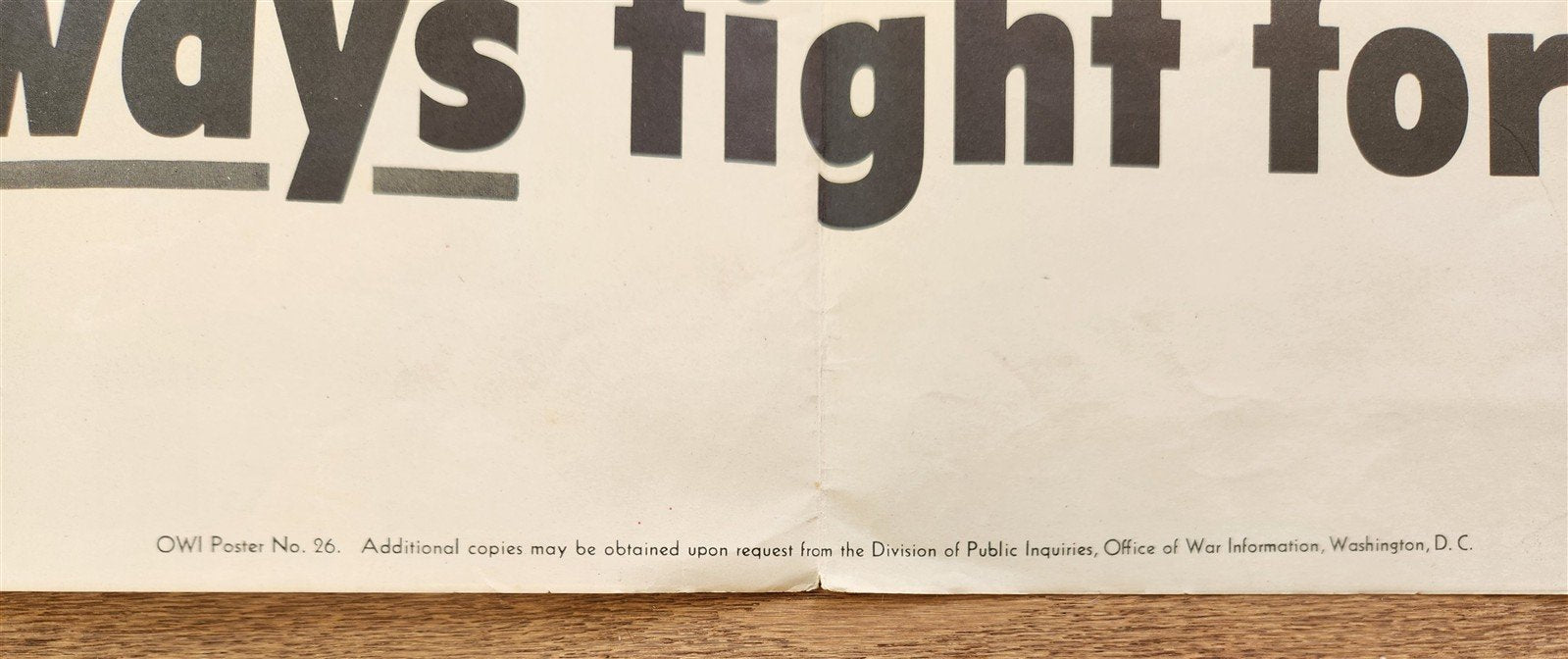 1943 PROPAGANDA POSTER AMERICANS WILL ALWAYS FIGHT FOR LIBERTY authentic 28x40"