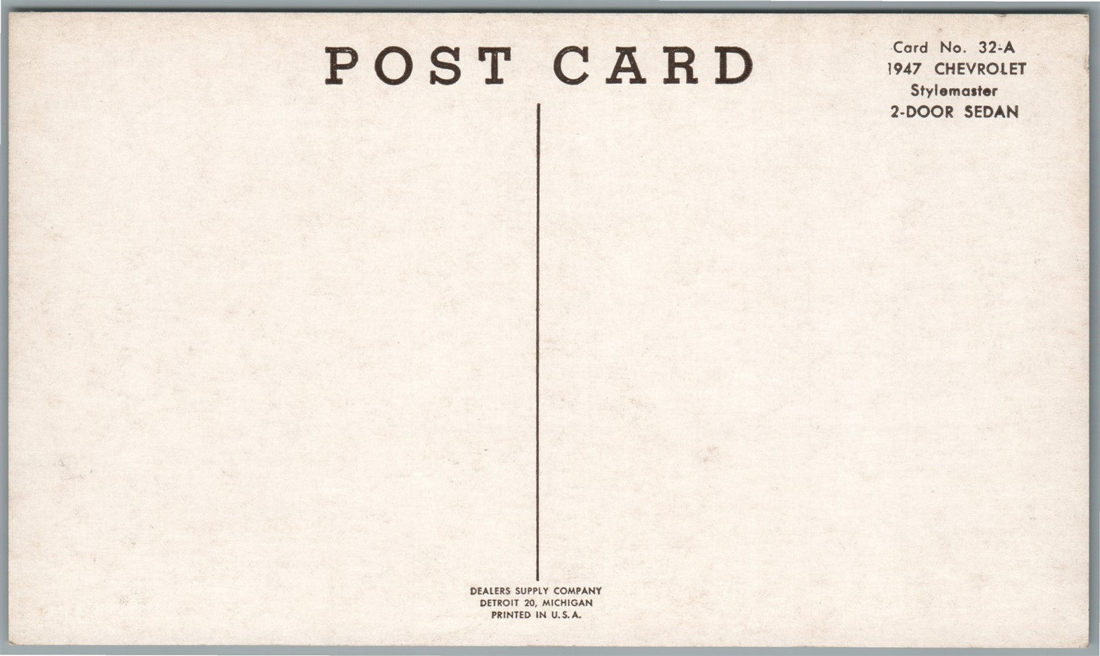 1947 CHEVROLET STYLEMASTER VINTAGE POSTCARD