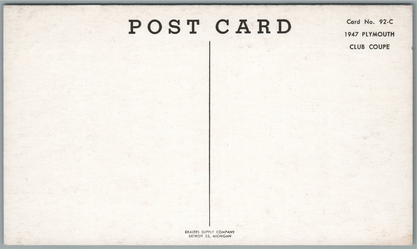 1947 PLYMOUTH CLUB COUPE VINTAGE POSTCARD