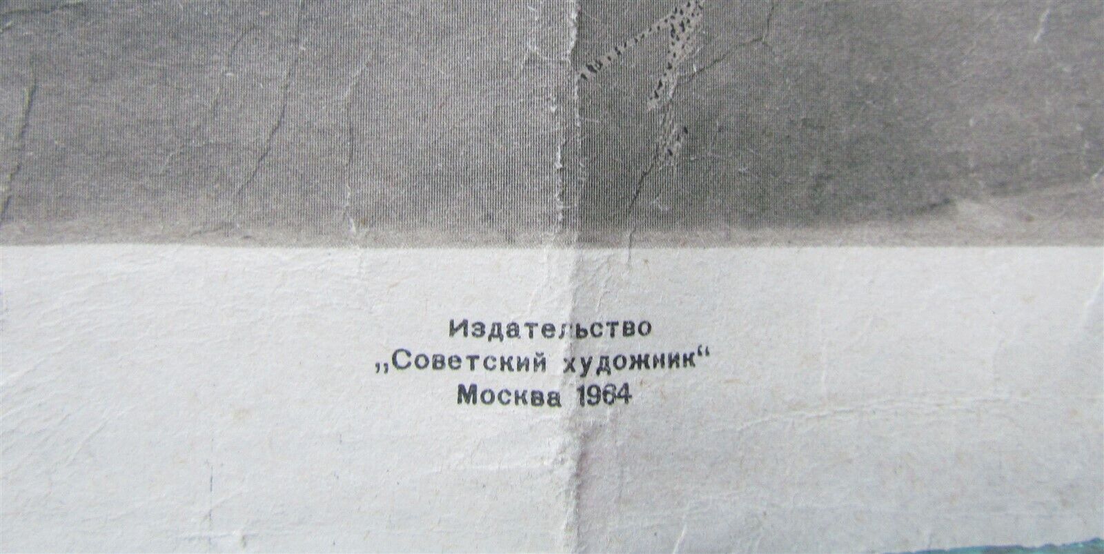 1964 RUSSIAN LABOR PROPAGANDA VINTAGE POSTER 22x31" PHOTOMONTAGE RAILROAD THEME