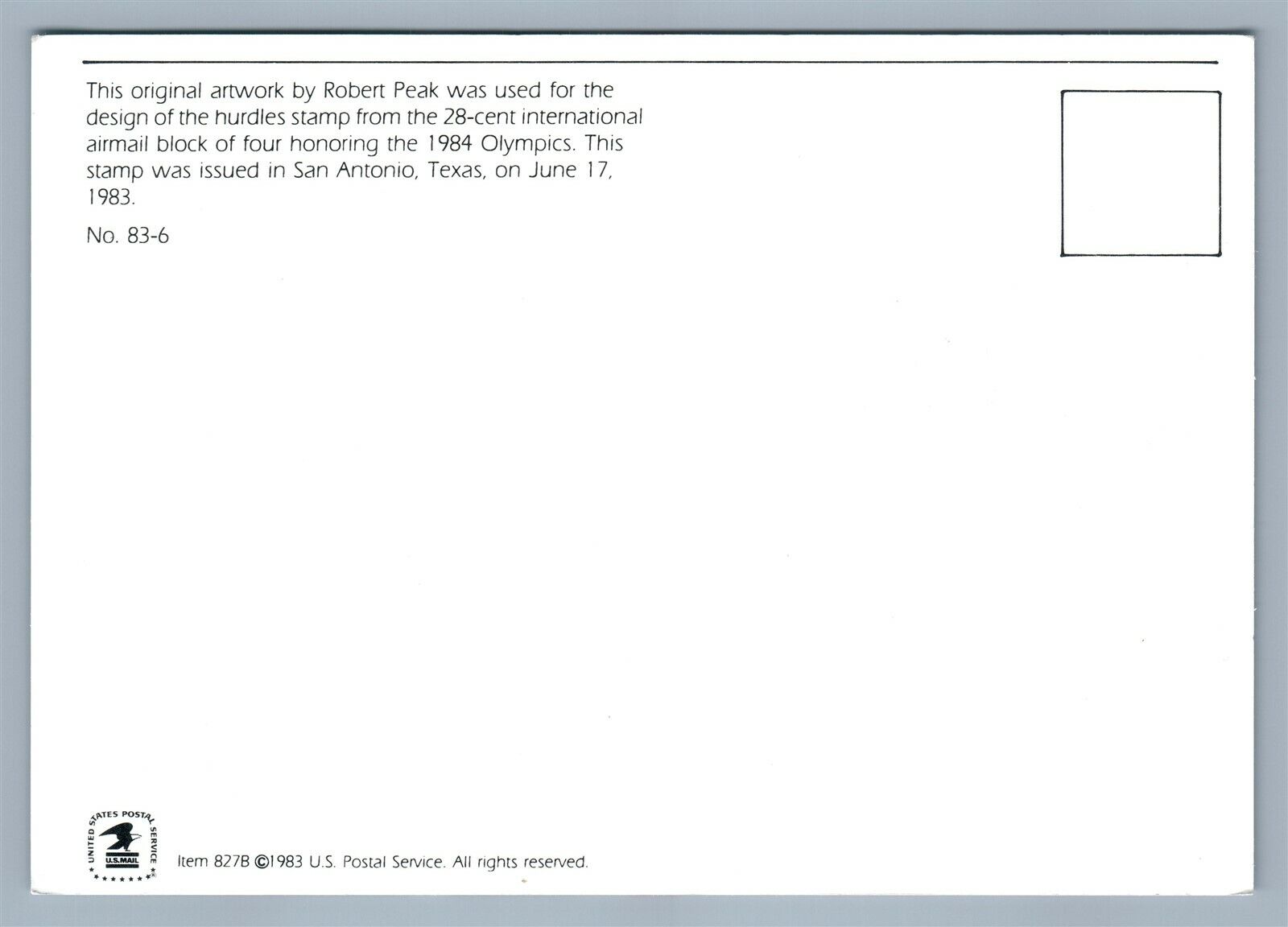 1984 OLYMPIC ATHLET SAN ANTONIO TX STAMP DESIGN by ROBERT PEAK VINTAGE POSTCARD