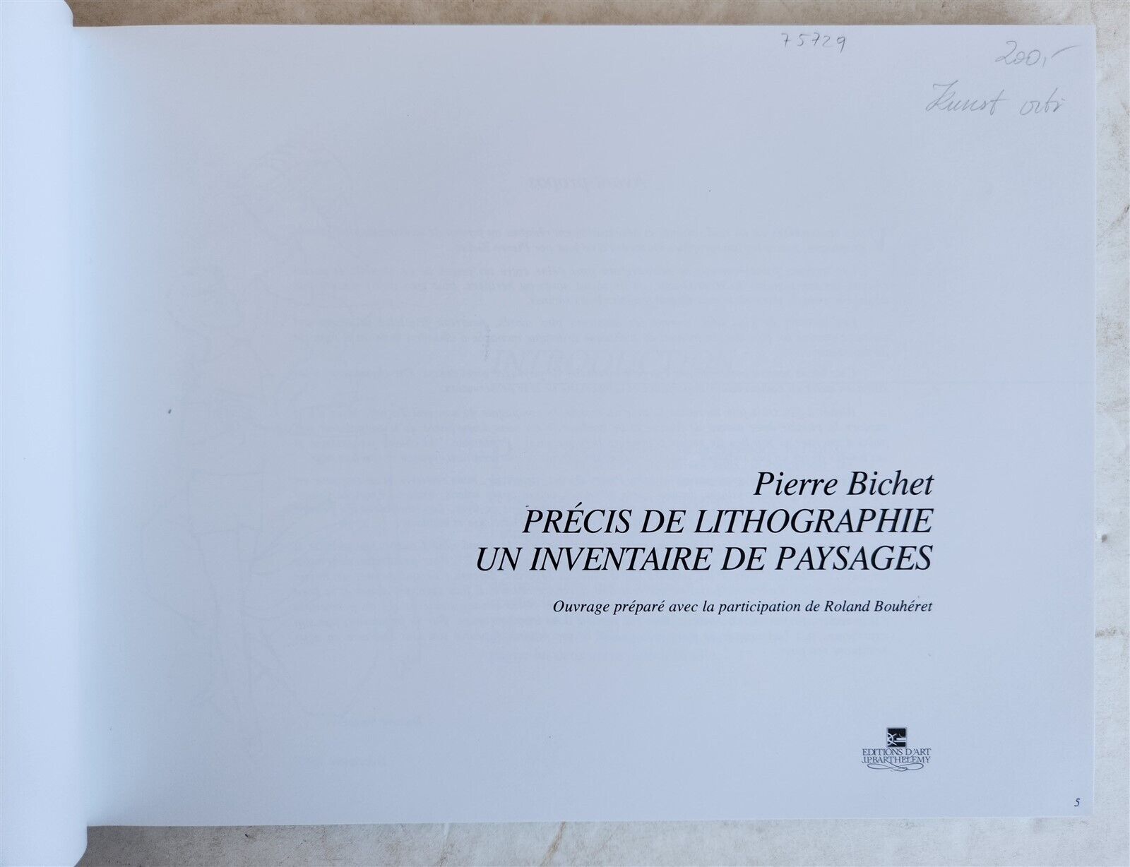 Bichet, P. Precis de Lithographie un inventaire de paysages. Paris ; 1987Lithographs of landscapes by Pierre BichetOblong folio, Size 9 3/4 by 12 1/2"Original cloth binding, with original slip caseExcellent condition of the album, minor wear of the slip caseText in French============================Please see my other auctions Thank You