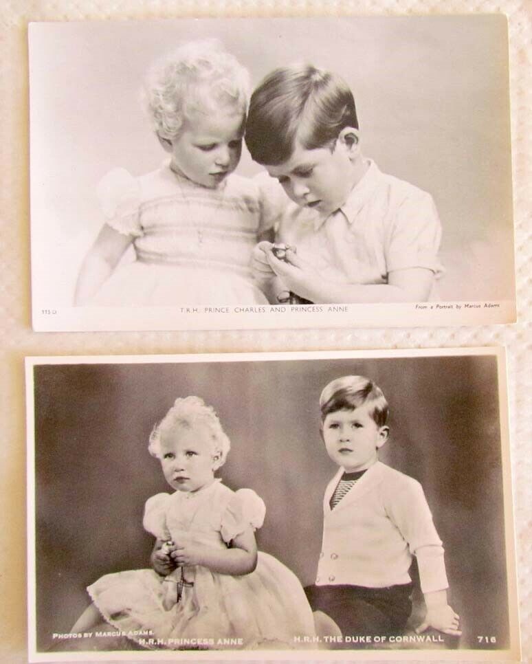 2 VINTAGE RPPC REAL PHOTO POSTCARDS BRITISH ROYAL PRINCESS ANNE & PRINCE CHARLES